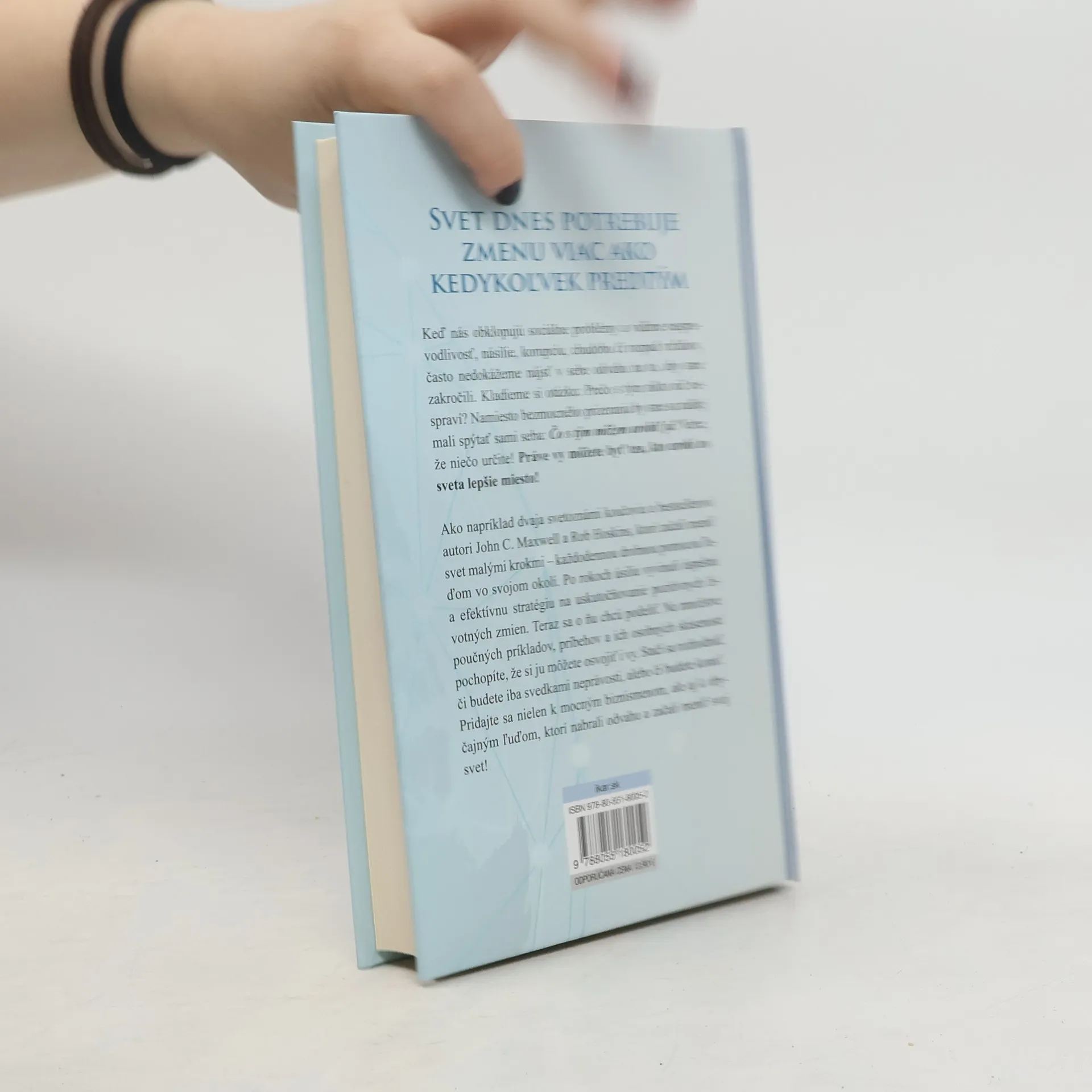 Keď nás obklopujú sociálne problémy a vidíme nespravodlivosť, násilie, korupciu, chudobu či rozpad vzťahov, často nedokážeme nájsť v sebe odvahu na to, aby sme zakročili. Kladieme si otázku: Prečo s tým nikto nič nespraví? Namiesto bezmocného prizerania by sme sa radšej mali spýtať sami seba: Čo s tým môžem urobiť ja? Verte, že niečo určite! Práve vy môžete byť ten, kto urobí zo sveta lepšie miesto! Ako napríklad dvaja svetoznámi koučovia a bestselleroví autori John C. Maxwell a Rob Hoskins, ktorí začali meniť svet malými krokmi - každodennou drobnou pomocou ľuďom vo svojom okolí. Po rokoch úsilia vyvinuli úspešnú a efektívnu stratégiu na uskutočňovanie pozitívnych životných zmien. V knihe Zmeňte svoj svet sa chcú o túto stratégiu podeliť. Na množstve poučných príkladov, príbehov a ich osobných skúseností pochopíte, že si ju môžete osvojiť i vy. Stačí sa rozhodnúť, či budete iba svedkami neprávosti, alebo či budete konať. Pridajte sa nielen k mocným biznismenom, ale aj k obyčajným ľuďom, ktorí nabrali odvahu a začali meniť svoj svet!