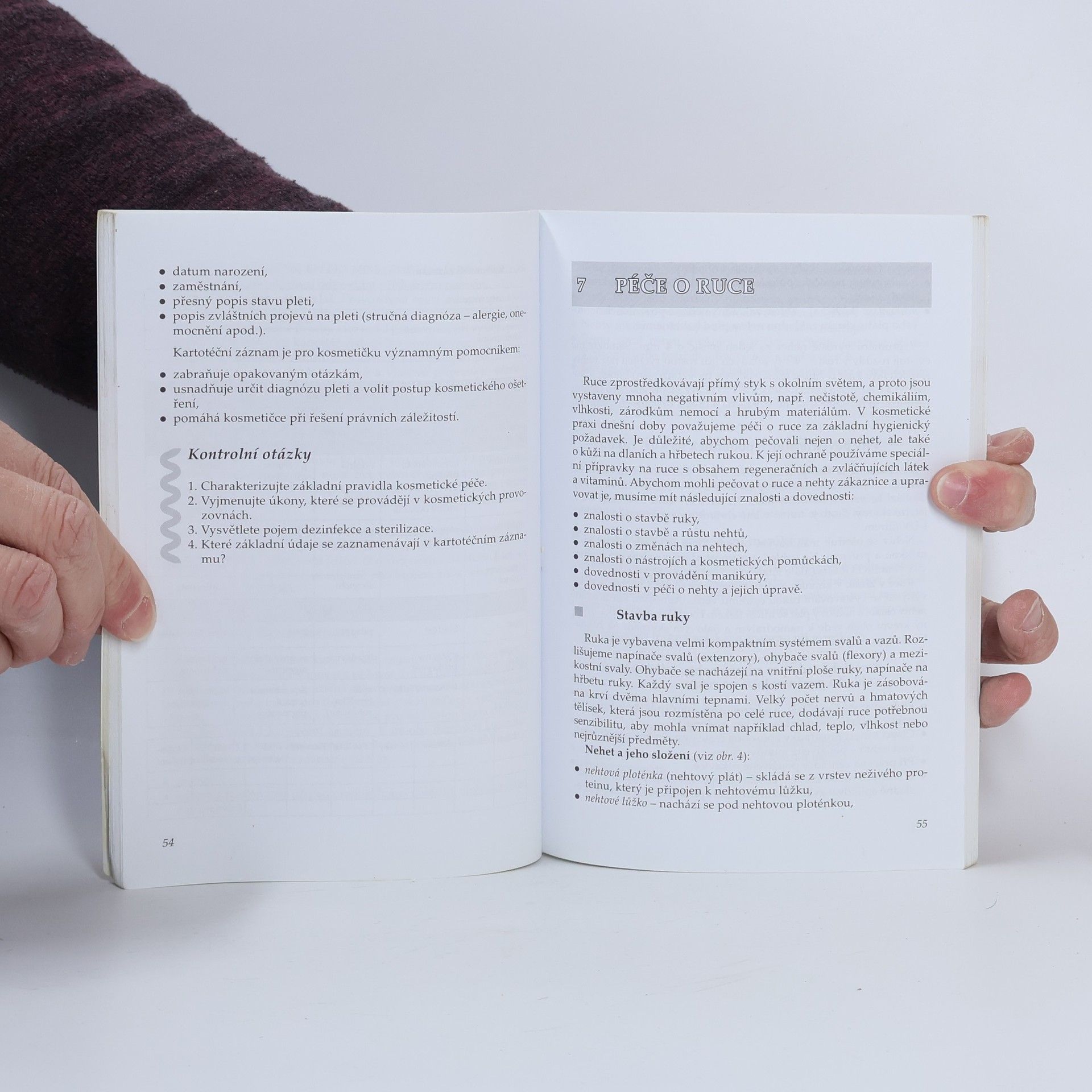 První díl třídílné řady učebnic popisuje provádění kvalifikované kosmetické péče. Vysvětluje pravidla péče o ruce, péče o pleť a upozorňuje na hygienické minimum při práci kosmetičky.