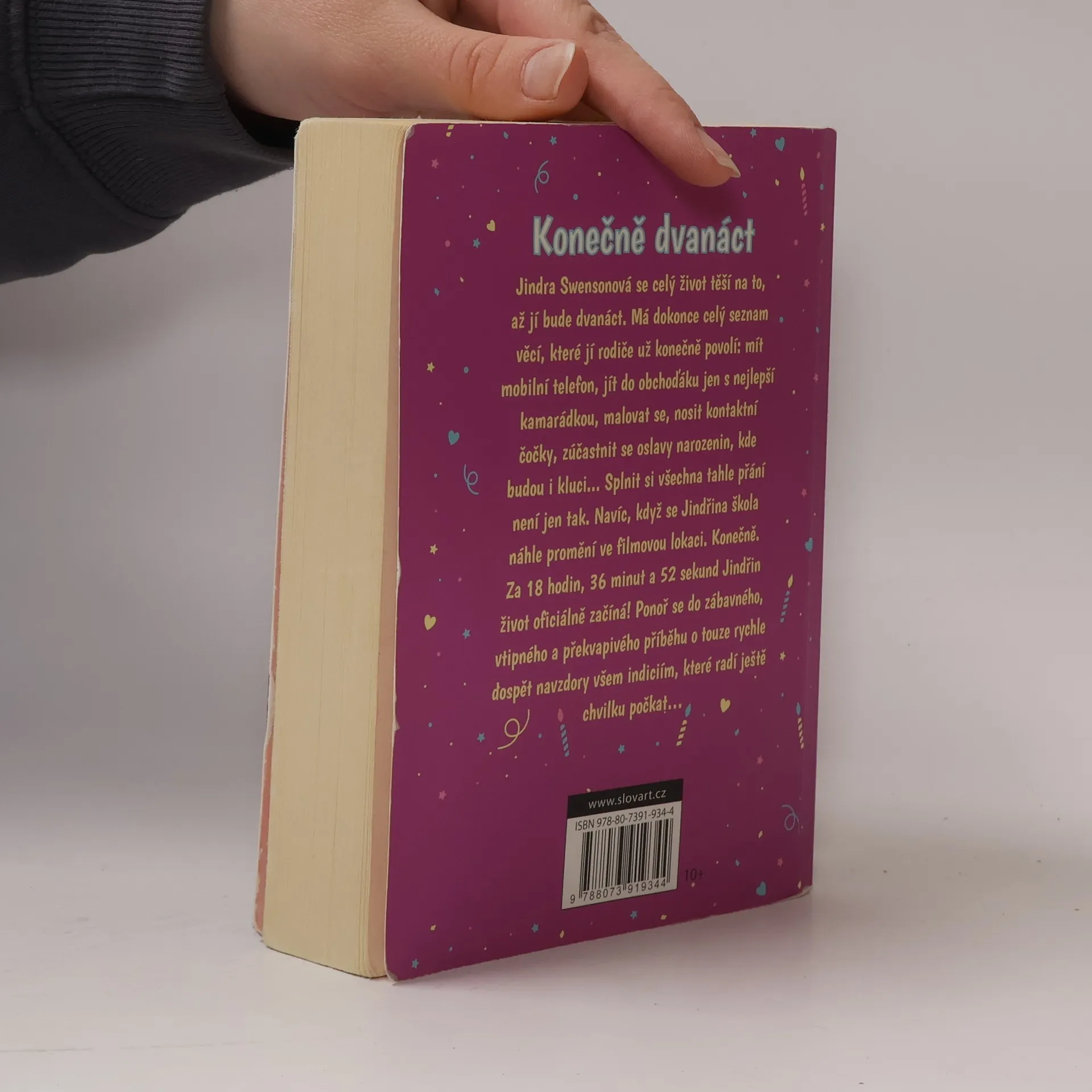 Jindra Swensonová čeká celý život na to, až jí bude dvanáct. Má dokonce celý seznam věcí, které se těchto narozenin týkají – mít mobilní telefon, jít do obchoďáku bez rodičů (jen s nejlepší kamarádkou), malovat se, nosit kontaktní čočky, jít na smíšenou oslavu narozenin... Kdykoliv Jindra po něčem touží, odbydou ji rodiče slovy, „Až ti bude dvanáct, až ti bude dvanáct, až ti bude dvanáct…". Konečně. Za 18 hodin, 36 minut a 52 sekund je to tady. Jindřin život oficiálně začíná! Ponoř se do zábavného, vtipného a překvapivého příběhu o touze rychle dospět navzdory všem indiciím, které radí ještě chvilku počkat…