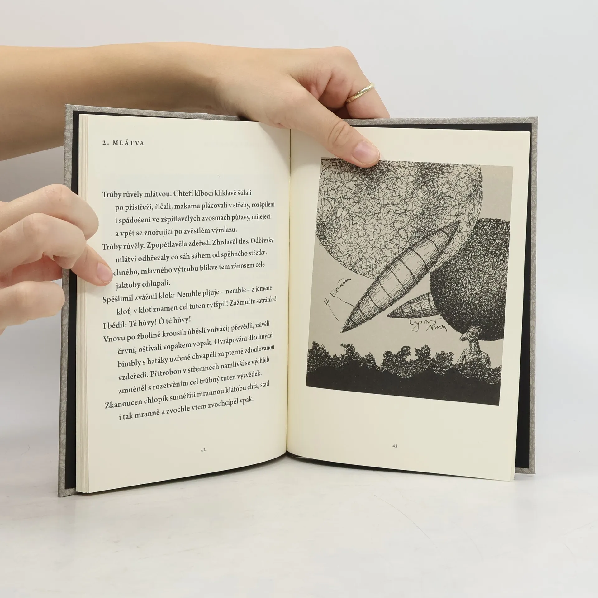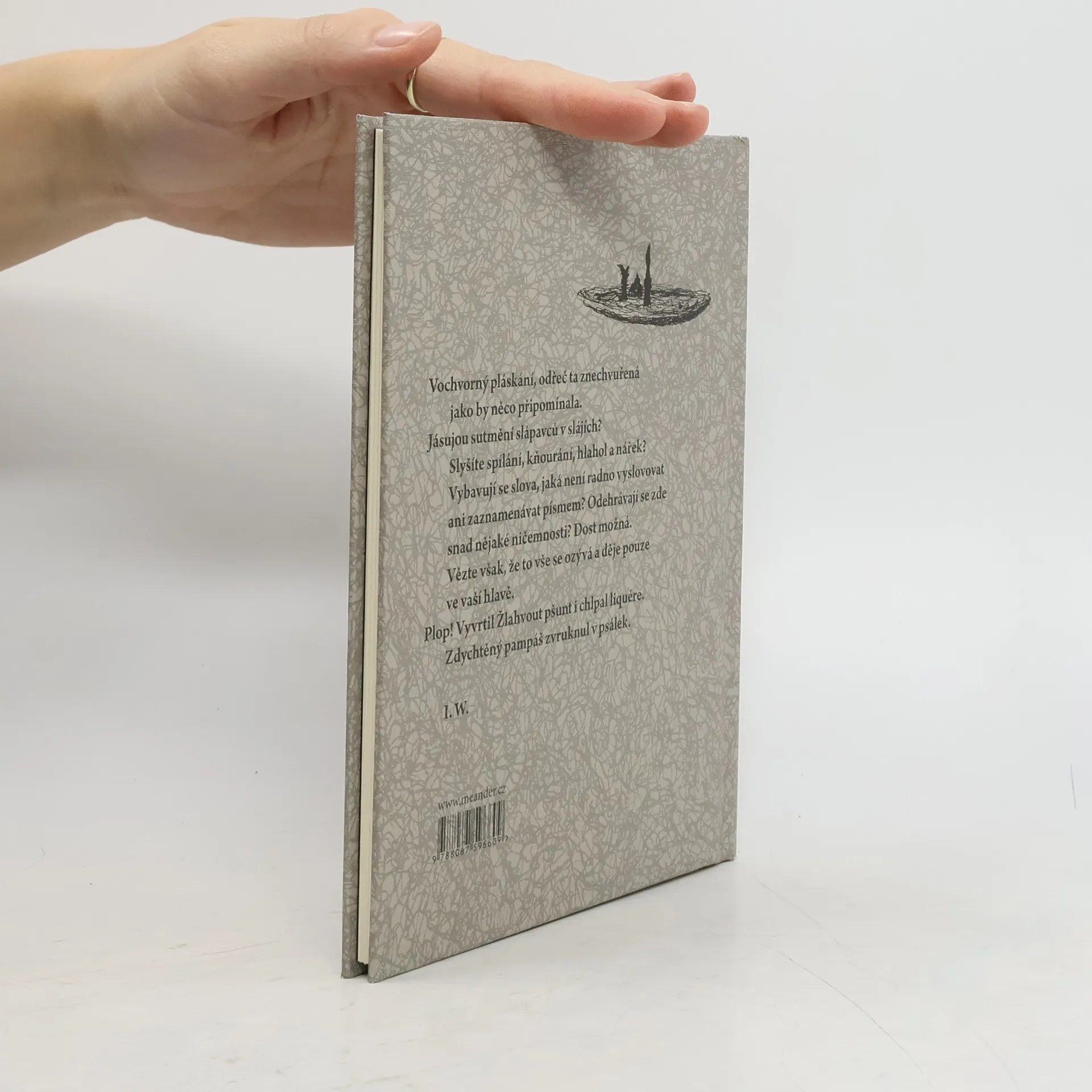 Vochvorný pláskání, odřeč ta znechvuřená jako by něco připomínala. Jásujou sutmění slápavců v slájích? Slyšíte spílání, kňourání, hlahol a nářek? Vybavují se slova, jaká není radno vyslovovat ani zaznamenávat písmem? Odehrávají se zde snad nějaké ničemnosti? Dost možná. Vězte však, že to vše se ozývá a děje pouze ve vaší hlavě. Plop! Vyvrtil Žlahvout pšunt i chlpal liquére. Zdychtěný pampáš zvruknul v psálek.