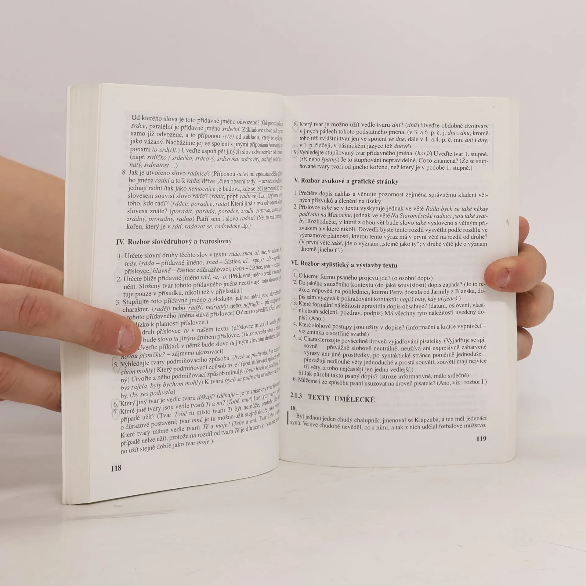 Praktická příručka především pro učitele všech stupňů škol. Zaměřuje se na jazykový rozbor vybraných textů různé náročnosti. U každého úkolu je uvedeno řešení.