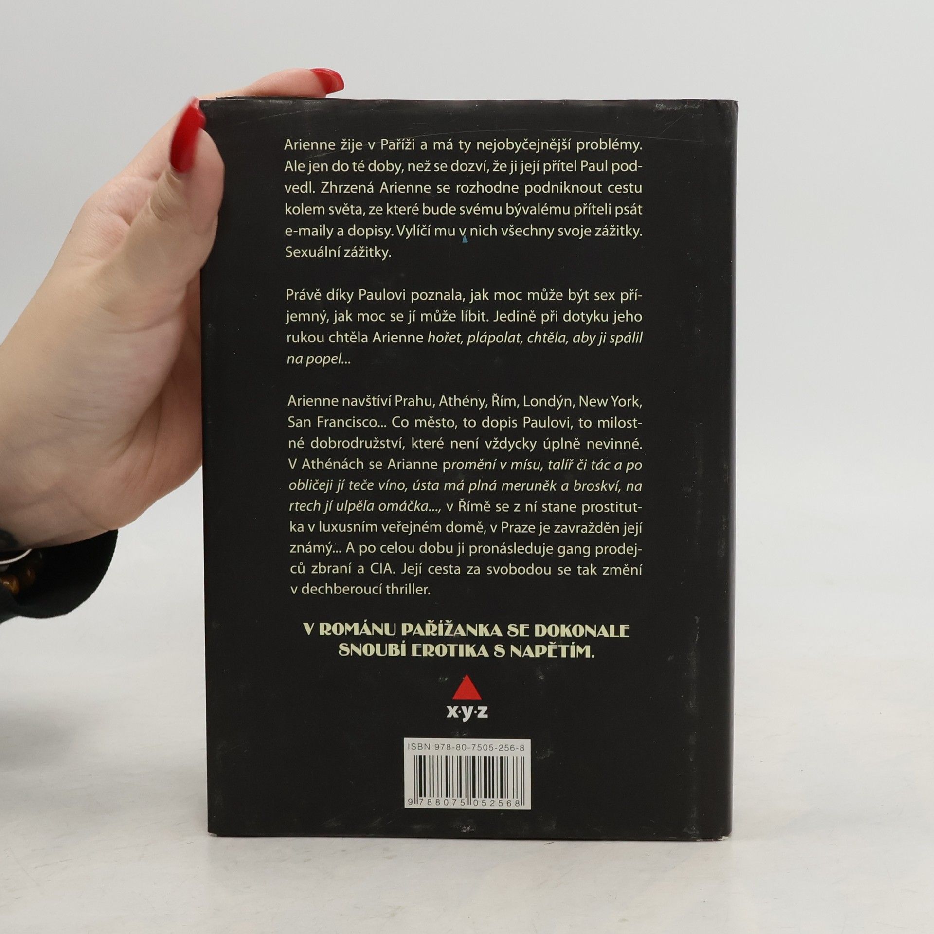 Arienn je obyčejná dívka s rodiči, láskami a normálním životem Pařížanky. Jednoho dne se však dozví, že její partner jí byl nevěrný a vydá se na cestu kolem světa. Cesta se nakonec promění v napínavý thriller, v němž jí jde o život. Erotika se tu dokonale mísí s napětím. Vyprávění je zasazeno do konkrétních míst. Praha, Paříž, Řím, Barcelona, New York, San Francisco tu defilují ve strhujícím tempu. V Athénách je hlavní hrdinka předhozena bohům, v Římě musí pracovat ve veřejném domě, v Mnichově se podřídí sadomasochistickým hrátkám. Celou tu dobu ji jako svědka pronásleduje gang prodejců zbraní a CIA.