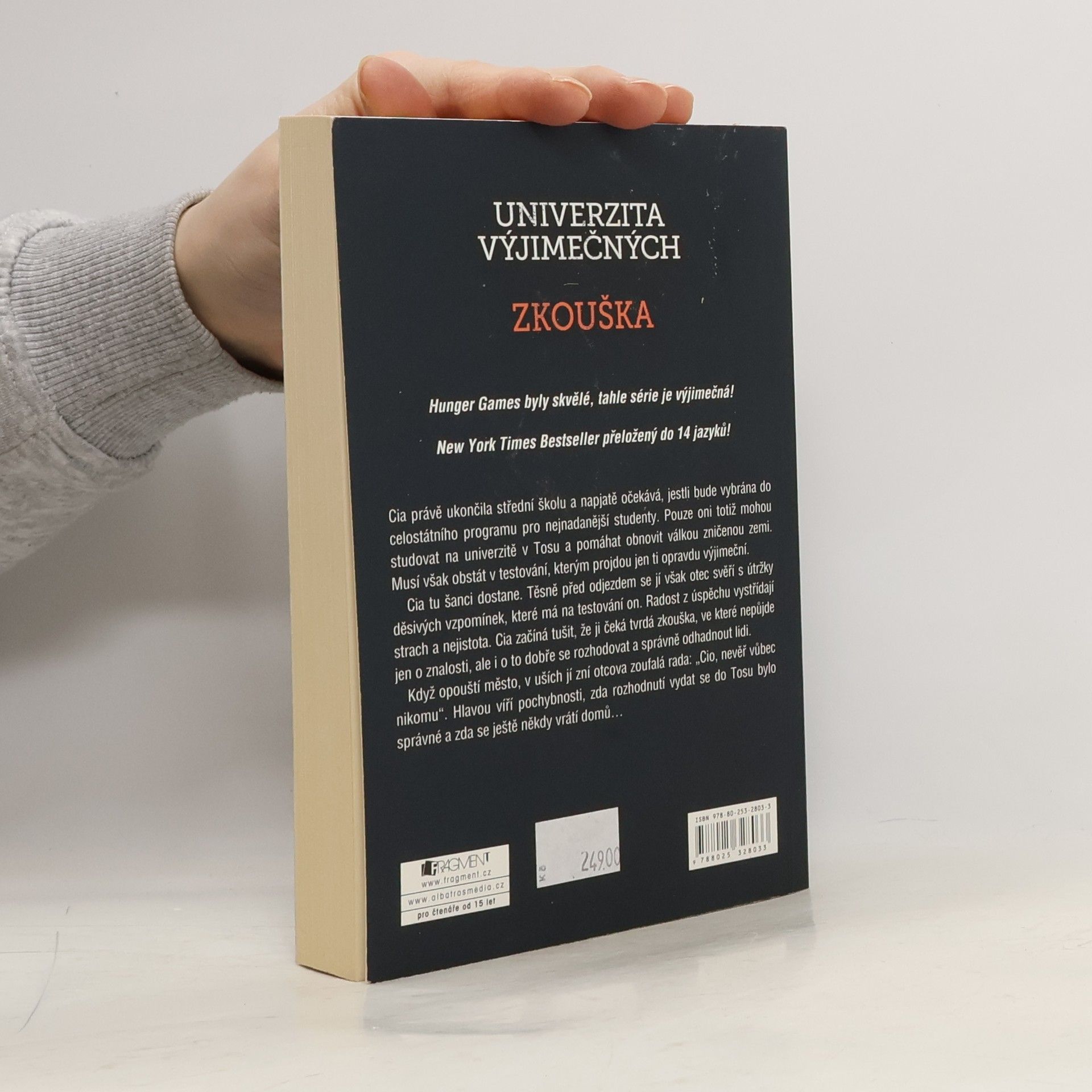 Hunger Games byly skvělé, tahle série je však výjimečná! New York Times Bestseller přeložený do 14 jazyků! Cia právě ukončila střední školu a napjatě očekává, jestli bude vybrána do celostátního programu pro nejnadanější studenty. Pouze oni totiž mohou studovat na univerzitě v Tosu a pomáhat obnovit válkou zničenou zemi. Musí však obstát v testování, kterým projdou jen ti opravdu výjimeční. Cia tu šanci dostane. Těsně před odjezdem se jí otec svěří s útržky děsivých vzpomínek, které má na testování on. Radost z úspěchu vystřídají strach a nejistota. Cia začíná tušit, že ji čeká tvrdá zkouška, ve které nepůjde jen o znalosti, ale i o to dobře se rozhodovat a správně odhadnout lidi. Když opouští město, v uších jí zní otcova zoufalá rada: „Cio, nevěř vůbec nikomu“. Hlavou víří pochybnosti, zda rozhodnutí vydat se do Tosu bylo správné a zda se ještě někdy vrátí domů…