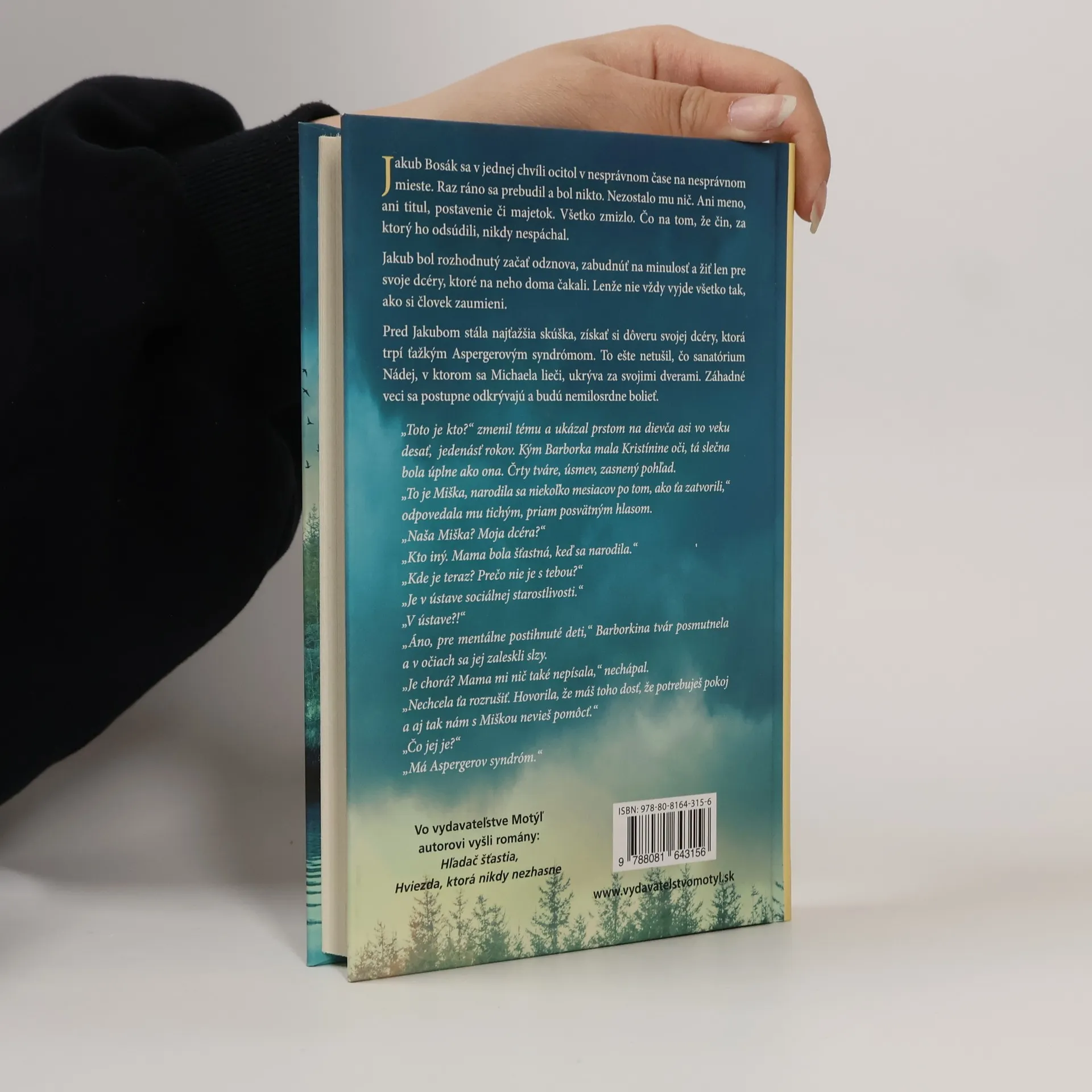 Jakub Bosák sa v jednej chvíli ocitol v nesprávnom čase na nesprávnom mieste. Raz ráno sa prebudil a bol nikto. Nezostalo mu nič. Ani meno, ani titul, postavenie či majetok. Všetko zmizlo. Čo na tom, že čin, za ktorý ho odsúdili, nikdy nespáchal.Jakub bol rozhodnutý začať odznova, zabudnúť na minulosť a žiť len pre svoje dcéry, ktoré na neho doma čakali. Lenže nie vždy vyjde všetko tak, ako si človek zaumieni.Pred Jakubom stála najťažšia skúška, získať si dôveru svojej dcéry, ktorá trpí ťažkým Aspergerovým syndrómom. To ešte netušil, že sanatórium Nádej, v ktorom sa Michaela lieči, ukrýva za svojimi dverami tie najťažšie skúšky. Záhadné veci sa postupne odkrývajú a budú nemilosrdne bolieť.„Toto je kto?“ zmenil tému a ukázal prstom na dievča asi vo vekudesať, jedenásť rokov. Kým Barborka mala Kristínine oči, tá slečnabola úplne ako ona. Črty tváre, úsmev, zasnený pohľad.„To je Miška, narodila sa niekoľko mesiacov po tom, ako ťa zatvorili,“odpovedala mu tichým, priam posvätným hlasom.„Naša Miška? Moja dcéra?“„Kto iný. Mama bola šťastná, keď sa narodila.“„Kde je teraz? Prečo nie je s tebou?“„Je v ústave sociálnej starostlivosti.“„V ústave?!“„Áno, pre mentálne postihnuté deti,“ Barborkina tvár posmutnelaa v očiach sa jej zaleskli slzy.„Je chorá? Mama mi nič také nepísala,“ nechápal.„Nechcela ťa rozrušiť. Hovorila, že máš toho dosť, že potrebuješ pokoja aj tak nám s Miškou nevieš pomôcť.“„Čo jej je?“„Má Aspergerov syndróm.“