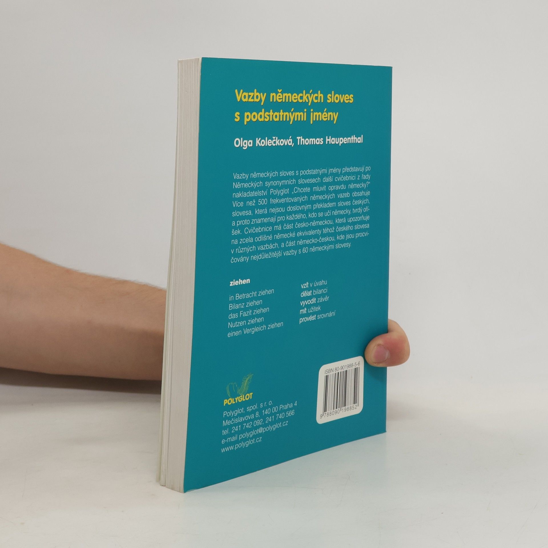 Vazby německých sloves s podstatnými jmény představují po Německých synonymních slovesech další cvičebnici z řady nakladatelství Polyglot "Chcete mluvit opravdu německy?". Více než 500 frekventovaných německých vazeb obsahuje slovesa, která nejsou doslovným překladem sloves českých, a proto znamenají pro každého, kdo se učí německy, tvrdý oříšek. Cvičebnice má část česko-německou, která upozorňuje na zcela odlišné německé ekvivalenty téhož českého slovesa v různých vazbách, a část německo-českou, kde jsou procvičkovány nejdůležitější vazby s 60 německými slovesy.