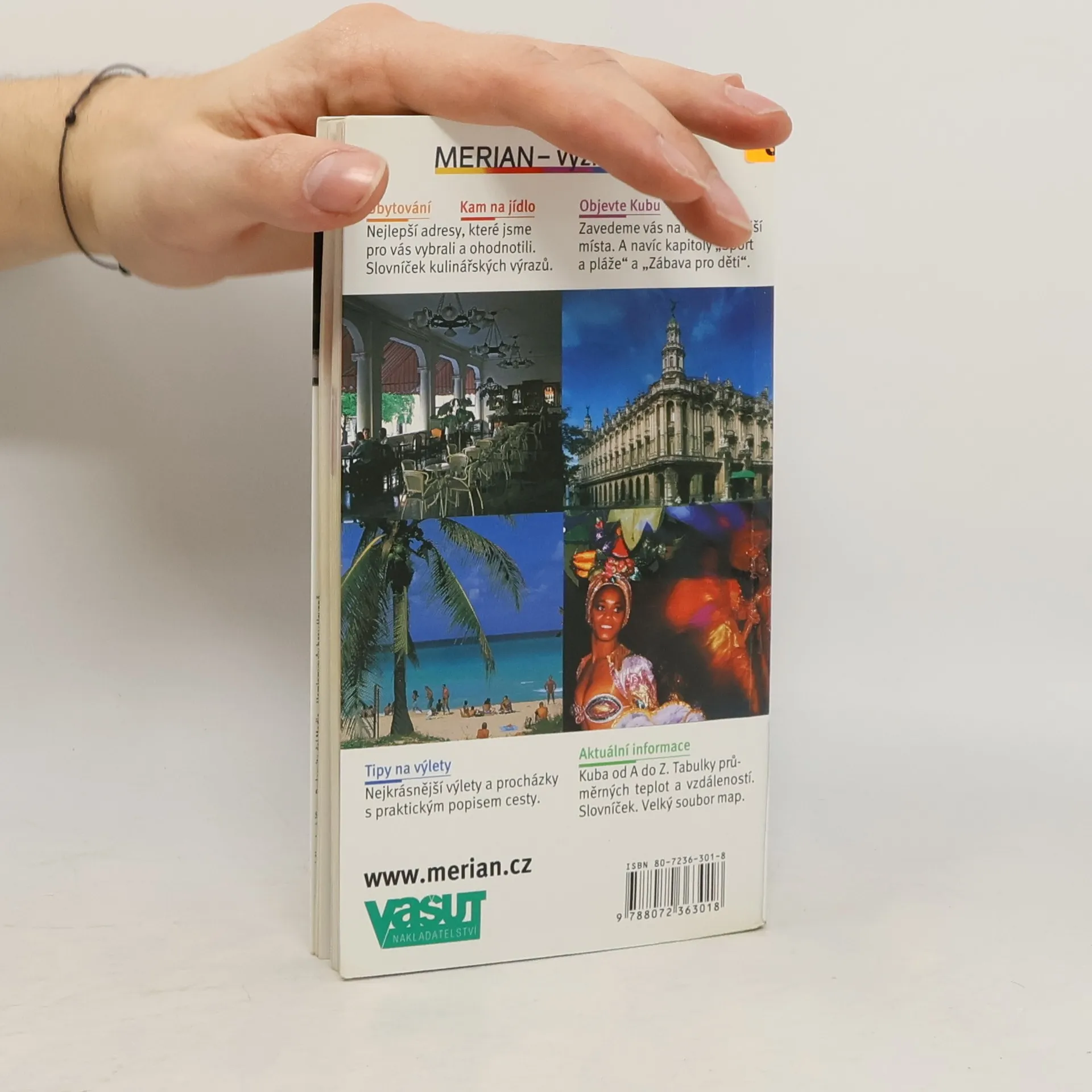 Průvodce po největším ostrově oblasti Karibiku je první cestovní příručkou v českém jazyce popisující "ostrov svobody". Průvodce líčí zajímavá místa Kuby, největšího ostrova Velkých Antil a celého Karibiku. Popsána jsou zajímavá místa hlavního města Havany i další turistické cíle na pobřeží i ve vnitrozemí - koloniální města jako je např. Trinidad, Santiago de Cuba a Camagüey, pohoří Sierra Maestra a Escambray, slavná pláž Varadero. Součástí svazku je i řada praktických informací poskytujících základní údaje o možnostech ubytování a stravování, přístupnosti pamětihodností nebo adresy informačních kanceláří. Bohatý fotografický doprovod, plánky měst, v závěru cestovní mapa a rejstříkový aparát.