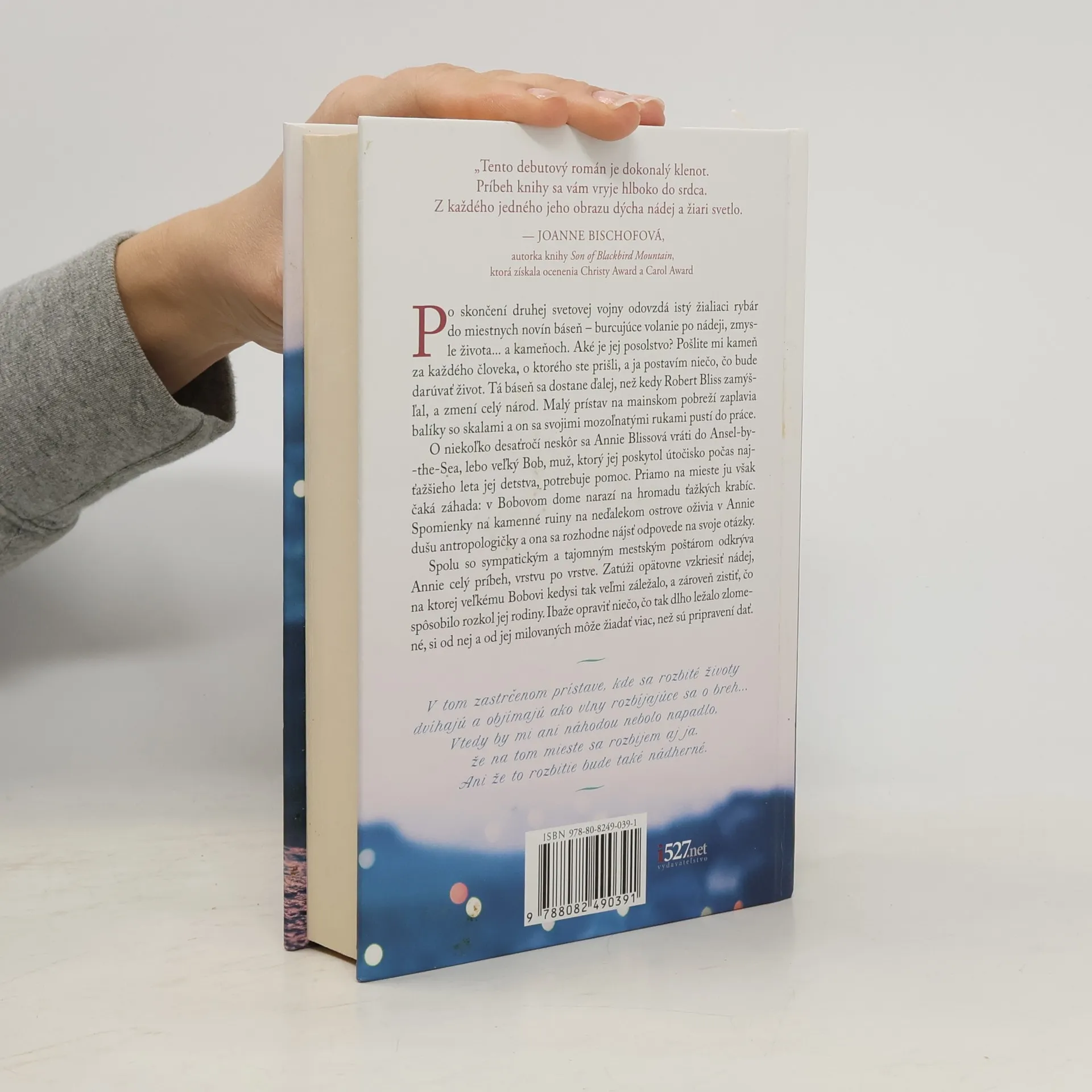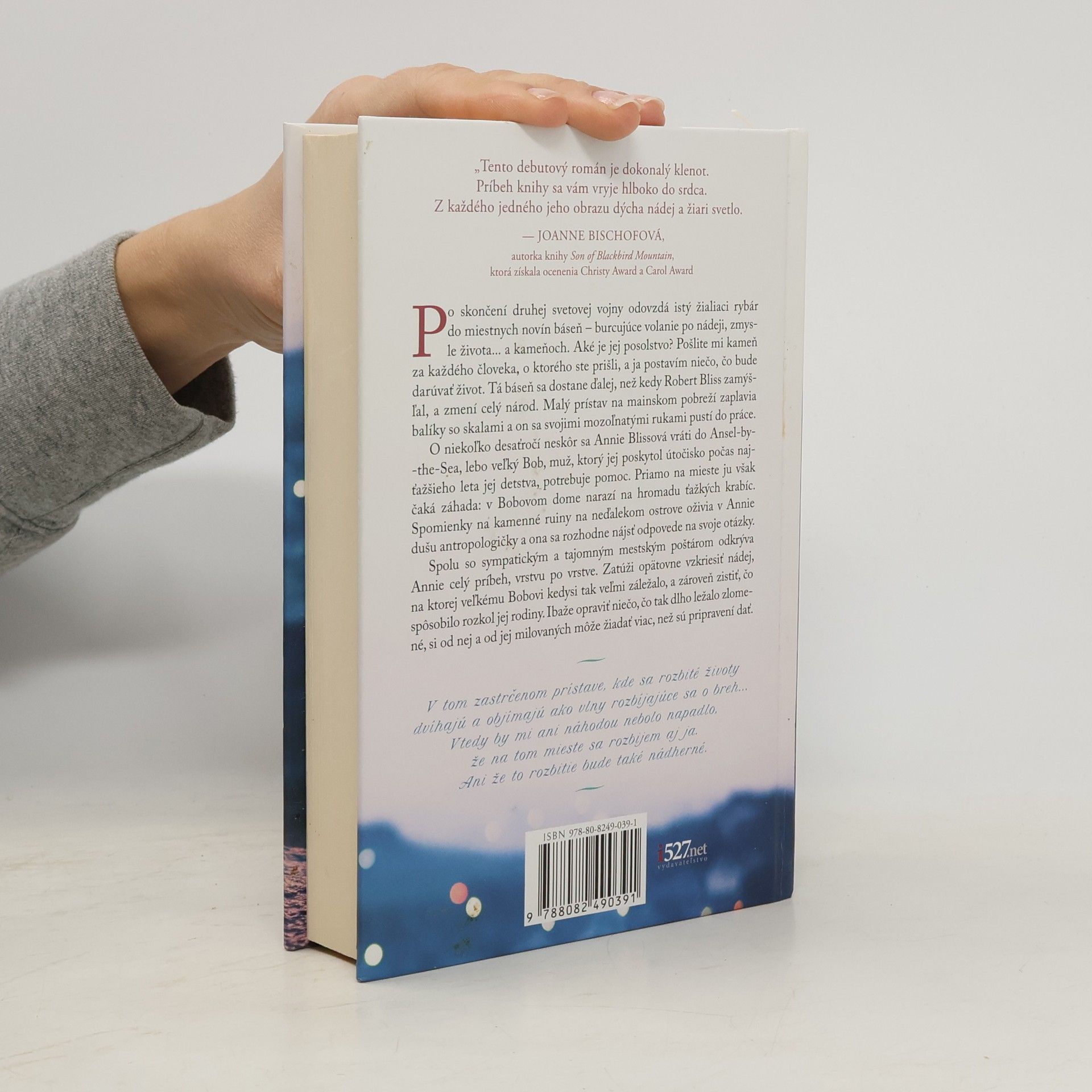 Po skončení druhej svetovej vojny odovzdá istý žialiaci rybár do miestnych novín báseň – burcujúce volanie po nádeji, zmysle života... a kameňoch. Aké je jej posolstvo? Pošlite mi kameň za každého človeka, o ktorého ste prišli, a ja postavím niečo, čo bude darúvať život. Tá báseň sa dostane ďalej, než kedy Robert Bliss zamýšľal, a zmení celý národ. Malý prístav na mainskom pobreží zaplavia balíky so skalami a on sa svojimi mozoľnatými rukami pustí do práce. O niekoľko desaťročí neskôr sa Annie Blissová vráti do Ansel-by-the-Sea, lebo veľký Bob, muž, ktorý jej poskytol útočisko počas najťažšieho leta jej detstva, potrebuje pomoc. Priamo na mieste ju však čaká záhada: v Bobovom dome narazí na hromadu ťažkých krabíc. Spomienky na kamenné ruiny na neďalekom ostrove oživia v Annie dušu antropologičky a ona sa rozhodne nájsť odpovede na svoje otázky. Spolu so sympatickým a tajomným mestským poštárom odkrýva Annie celý príbeh, vrstvu po vrstve. Zatúži opätovne vzkriesiť nádej, na ktorej veľkému Bobovi kedysi tak veľmi záležalo, a zároveň zistiť, čo spôsobilo rozkol jej rodiny. Ibaže opraviť niečo, čo tak dlho ležalo zlomené, si od nej a od jej milovaných môže žiadať viac, než sú pripravení dať.