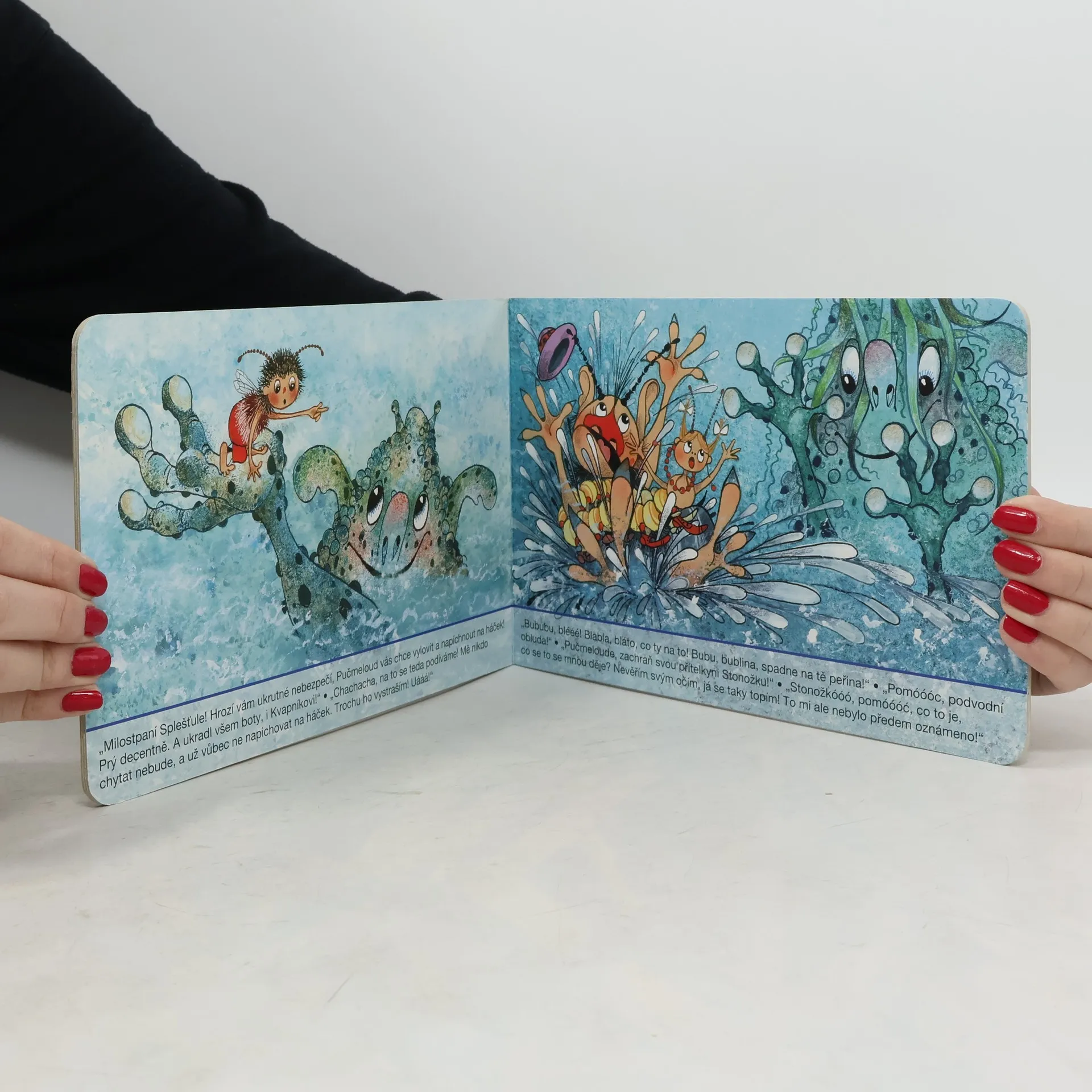 Kdo by neznal včelí medvídky, ať už z knížky, nebo z večerníčků. Tentokrát je i ostatní známé postavičky můžete potkat v leporelu. Pučmeloud totiž vyrazil se Stonožkou na ryby a rozhodl se, že je bude chytat na Spleštuli. Ale nebojte se, paní Splešťule si nedá všechno líbit!