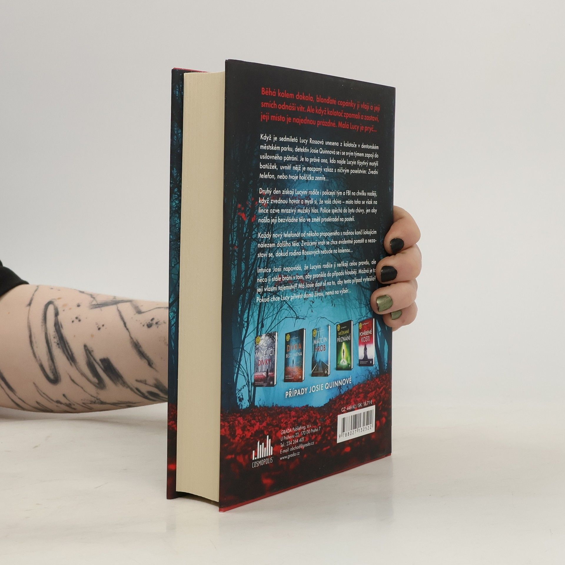 Když je sedmiletá Lucy Rossová unesena z kolotoče v dentonském městském parku, detektiv Josie Quinnová se i se svým týmem zapojí do usilovného pátrání. Je to právě ona, kdo najde Lucyin třpytivý motýlí batůžek, uvnitř nějž je nacpaný vzkaz s ničivým poselstvím: Zvedni telefon, nebo tvoje holčička zemře... Druhý den získají Lucyini rodiče i policejní tým a FBI na chvilku naději, když zvednou hovor a myslí si, že volá chůva – místo toho se však na lince ozve mrazivý mužský hlas. Policie spěchá do bytu chůvy, jen aby našla její bezvládné tělo ve změti prostěradel na posteli. Každý nový telefonát od někoho propojeného s rodinou končí šokujícím nálezem dalšího těla. Zvrácený vrah se chce evidentně pomstít a nezastaví se, dokud rodina Rossových nebude na kolenou... Intuice Josii napovídá, že Lucyini rodiče jí neříkají celou pravdu, ale něco jí stále brání v tom, aby pronikla do případu hlouběji. Možná je to její vlastní tajemství? Má Josie dost sil na to, aby tento případ vyřešila? Pokud chce Lucy přivést domů živou, nemá na výběr...