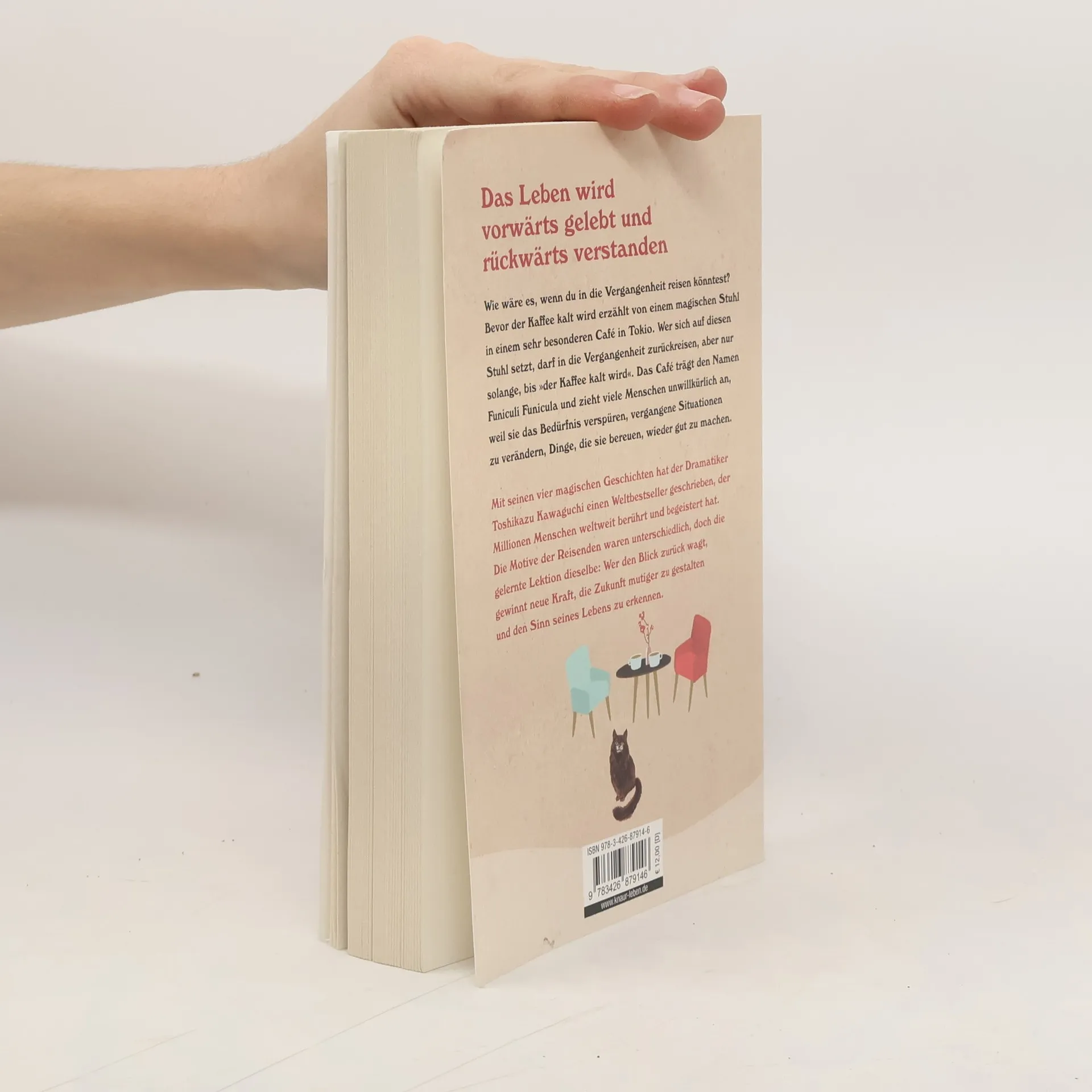 Vier Geschichten, die uns lehren, aus der Vergangenheit über die Zukunft zu lernen und den Blick nach vorn zu öffnen. Was wäre, wenn du in die Vergangenheit reisen könntest? Bevor der Kaffee kalt wird erzählt die Geschichte von einem magischen Sessel in einem sehr besonderen Café in Japan. Wer sich in diesen Sessel setzt, darf in die Vergangenheit zurückreisen, aber nur solange, bis „der Kaffee kalt wird“. Das Café trägt den Namen „Funiculi Funicula“ und zieht viele Menschen unwillkürlich an, weil sie das Bedürfnis verspüren, die Vergangenheit noch einmal zu durchleben. Im Stil von Das Café am Rande der Welt erzählt der Dramatiker Toshikazu Kawaguchi vier mitreißende Geschichten von Menschen, die in die Vergangenheit gereist sind. Ihre Motive waren unterschiedlich, doch die gelernte Lektion dieselbe. Egal ob Versöhnung, Vergebung oder neue Hoffnung - das Leben wird vorwärts gelebt und rückwärts verstanden. Vier Erzählungen über den Sinn des Lebens und die Aussöhnung mit der Vergangenheit: Die Liebenden Das verheiratete Paar Die Schwestern Mutter und Kind