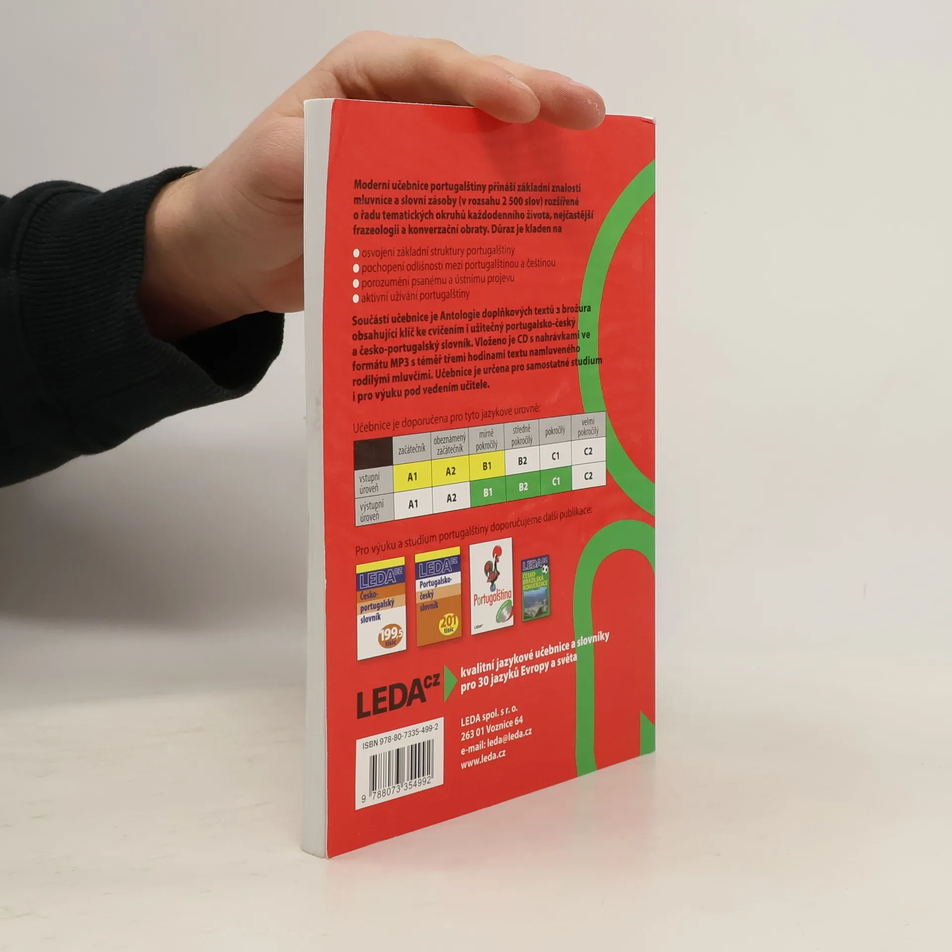 Moderní učebnice portugalštiny přináší základní znalosti mluvnice a slovní zásoby (v rozsahu 2 500 slov) rozšířené o řadu tématických okruhů každodenního života, nejčastější frazeologii a konverzační obraty. Důraz je kladen na - osvojení základní struktury portugalštiny - pochopení odlišností mezi portugalštinou a češtinou - porozumění psanému i ústnímu projevu - aktivní používání portugalštiny Součástí učebnice je Antologie doplňkových textů a brožura obsahující klíč ke cvičením i užitečný portugalsko-český a česko-portugalský slovník. Učebnice je určena pro samostatné studium i pro výuku pod vedením učitele.