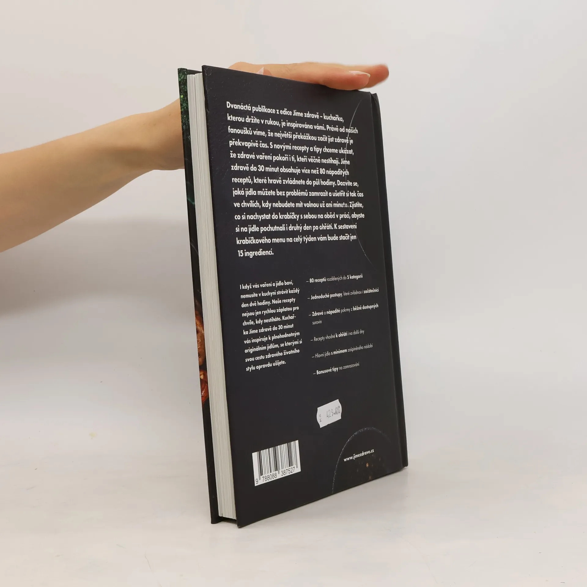 Úspěšný bestseller Jíme zdravě do 30 minut se dočkal nového rozšířeného vydání. Nyní v pevné vazbě, s novou obálkou a 32 stranami navíc, nabízí spoustu nových či obohacených receptů. Kniha obsahuje 192 stran a 80 nápaditých receptů, které snadno připravíte do 30 minut. Inspiraci pro koncept nové kuchařky jsme čerpali od více než 1000 čtenářů, kteří preferovali rychlé recepty. Věnujeme se zdravému vaření, aniž byste museli trávit hodiny v kuchyni. Recepty jsou rozděleny do 5 hlavních kategorií: hlavní jídla, polévky, dezerty a svačiny, zamražování a krabičkování. Hlavní jídla jsou navržena tak, aby minimalizovala zašpinění nádobí. Oblíbené recepty zahrnují šunkofleky a karbanátky z červené čočky. Krémové polévky zvládnete s minimem náčiní. Na výlet si můžete vzít řepné sušenky nebo borůvkové muffiny, které děti ohodnotily na jedničku. Kniha vás naučí efektivně plánovat jídelníček a zamražovat jídla, abyste ušetřili čas. Dozvíte se, co si nachystat na oběd do krabičky, aby chutnalo i druhý den. K sestavení krabičkového menu na celý týden vám postačí 15 ingrediencí. Těšit se můžete na přes 80 receptů, originální tipy na úsporu času, 12 sladkých dezertů, 10 krémových polévek a další nápady na pomazánky.