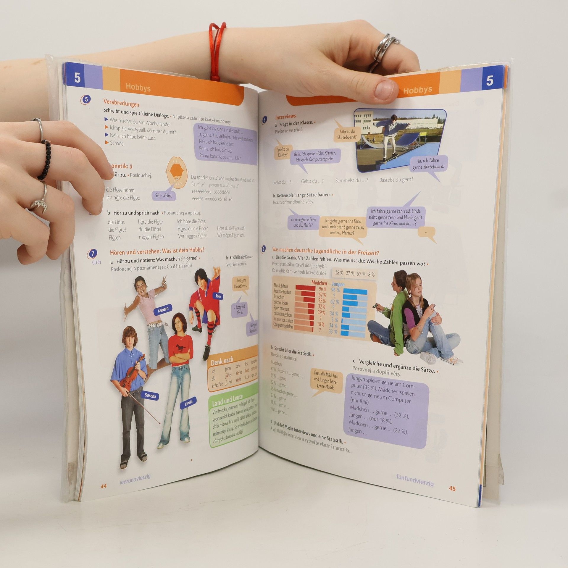 Učebnice je určena pro výuku němčiny jako 2. cizího jazyka od konce druhého stupně ZŠ a svou koncepcí a rozsahem zaručuje plynulý postup výuky až k maturitní zkoušce. V souladu se SERR pro jazyky se učebnice zaměřuje na všechny čtyři základní dovednosti a v každé lekci stanovuje komunikativní cíle. Žáci jsou vedeni k tomu, aby v závěru lekce vždy sami zhodnotili, nakolik se jim těchto cílů podařilo dosáhnout. České překlady slovíček jsou k dispozici ve všech dílech, jak ve slovnících lekcí, tak v závěrečném abecedním slovníku. Celou učebnicí se již od počátku prolínají reálie německy mluvících zemí, každá lekce navíc obsahuje krátký text (Land und Leute), přinášející zajímavosti z německého prostředí (v prvních dvou dílech také česky). Gramatika vždy vyplývá z kontextu a žáci jsou vedeni k tomu, aby sami doplnili jednoduše formulovaná pravidla. Kompletní přehled gramatiky s českým komentářem najdou v pracovním sešitě jako vyjímatelnou přílohu.