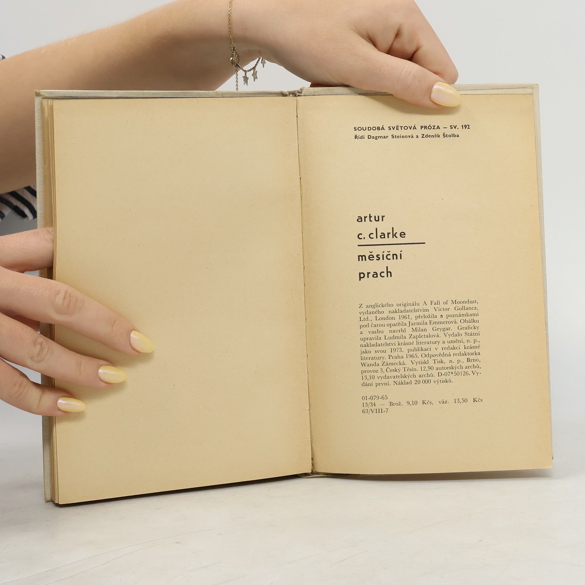 Vědeckofantastický román anglického spisovatele (nar. 1917), jenž má za sebou už na třináct prozaických knih. V této poslední z r. 1961 přenáší čtenáře do 21. století a na Měsíc, kde lidé už normálně žijí i kam podnikají výlety ze Země. Vypráví o cestě skupiny turistů měsíčním autobusem, jeho postižení přírodní katastrofou, pádu do hlubiny a zavalení měsíčním prachem a o složité a důmyslné záchraně cestujících.