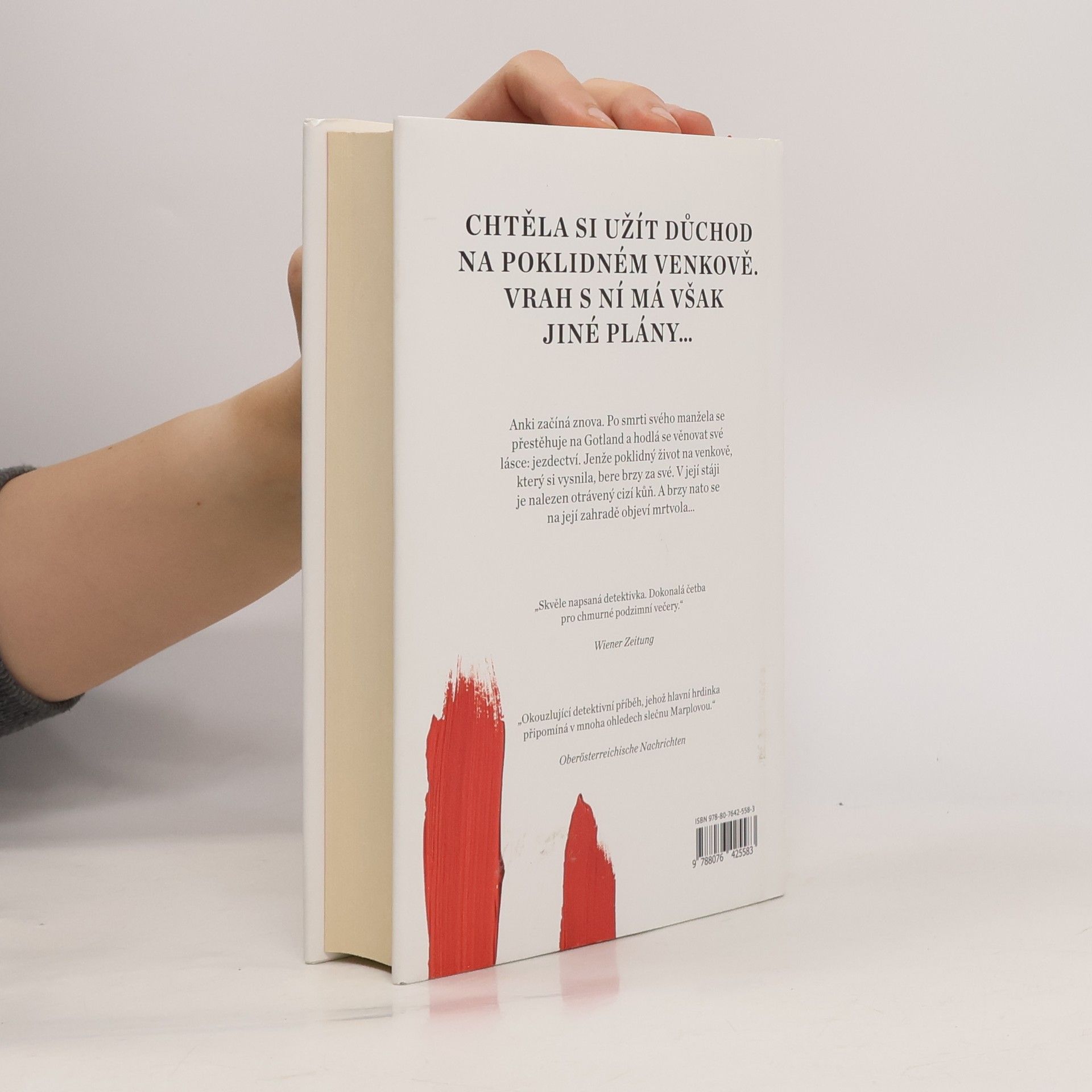 Po smrti nemocného manžela se Anki Karlssonová těší na nový život. Konečně se začne věnovat své zálibě z dětství – jezdectví. Opouští Stockholm, kupuje dva islandské koně a stěhuje se do malé gotlandské farnosti Mullvalds. Tam hodlá vyrážet na projížďky krásnou přírodou a užívat si příjemný život důchodkyně. Sotva si ale začne vybalovat věci, idylka se rozplyne. Někdo úmyslně poničí vnitřek kostela a na oltářním plátnu zanechá krvavé stopy. Brzy nato u Anki ve stáji leží cizí otrávený kůň. Když se k tomu všemu na její zahradě najde mrtvola, všichni ji začnou podezírat. Společně s Tryggvem, kriminálním vyšetřovatelem v důchodu, který k ní ze začátku není nejpřívětivější, dělá Anki vše pro to, aby zjistila, kdo narušuje klid v Mullvalds. Poznamenaní stíny je první díl detektivní série o Anki Karlssonové.