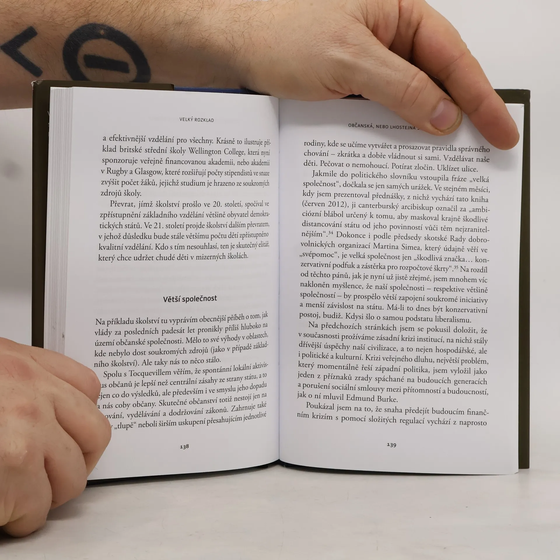 Symptomy úpadku dnes vidíme všude kolem sebe: zpomalování růstu, drtivé zadlužení, narůstající nerovnost, stárnutí populace, protispolečenské jednání. Co přesně se vlastně pokazilo? Podle Fergusona je problém v tom, že se rozkládají naše instituce – zastupitelská vláda, volný trh, zákony a občanská společnost. Rozpad institucí je příčinou ekonomické stagnace i geopolitického úpadku. Aby se tyto procesy zastavily, bude třeba nebojácných vůdců a radikálních reforem.