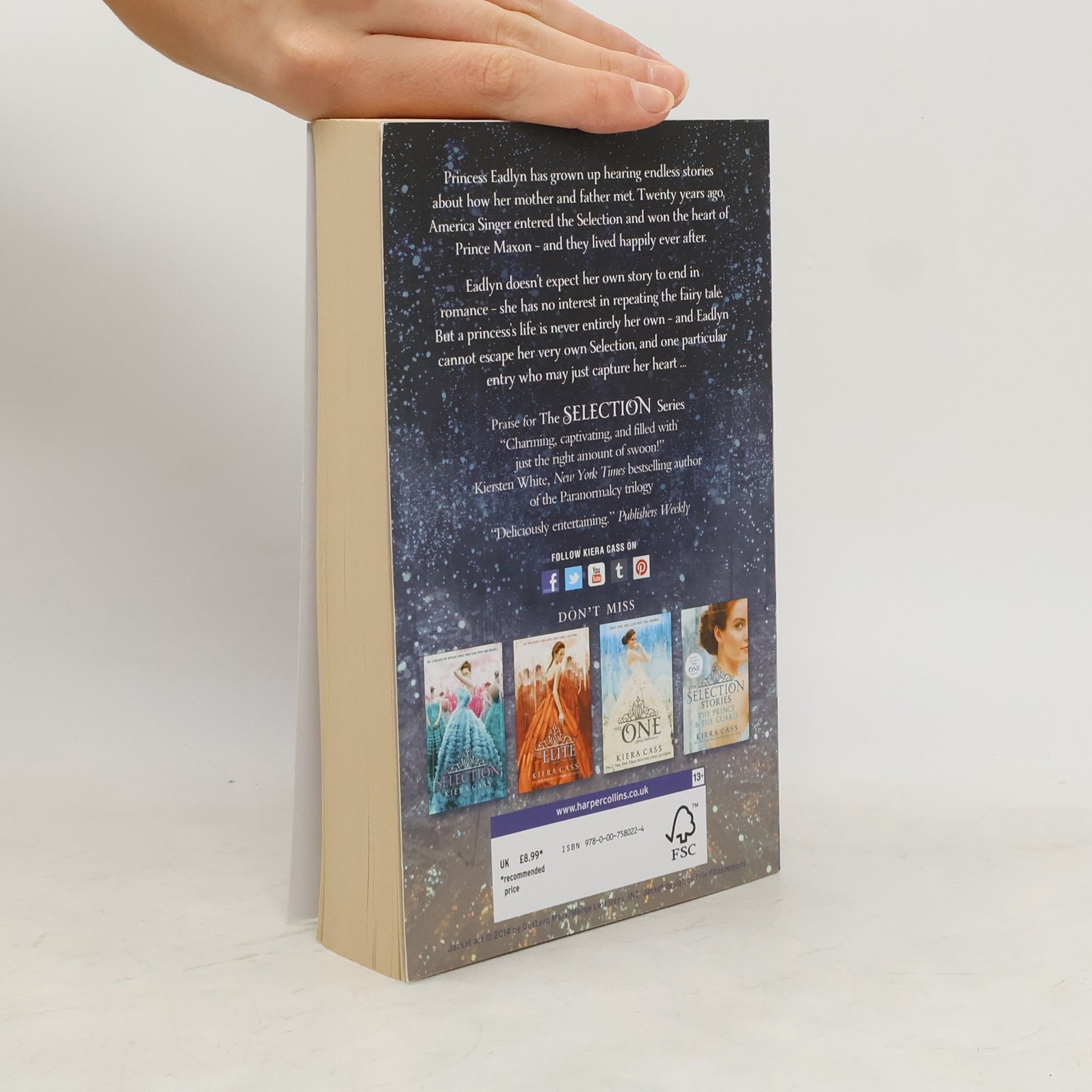 Kiera Cass's #1 New York Times bestselling Selection series has enchanted readers from the very first page. In this fourth romantic novel, follow Illea's royal family into a whole new Selection-and find out what happens after happily ever after. Eighteen years ago, America Singer entered the Selection and won Prince Maxon's heart. Now the time has come for Princess Eadlyn to hold a Selection of her own. Eadlyn doesn't expect her Selection to be anything like her parents' fairy-tale love story...but as the competition begins, she may discover that finding her own happily ever after isn't as impossible as she's always thought. A new generation of swoonworthy characters and captivating romance awaits in the fourth book of the Selection series!