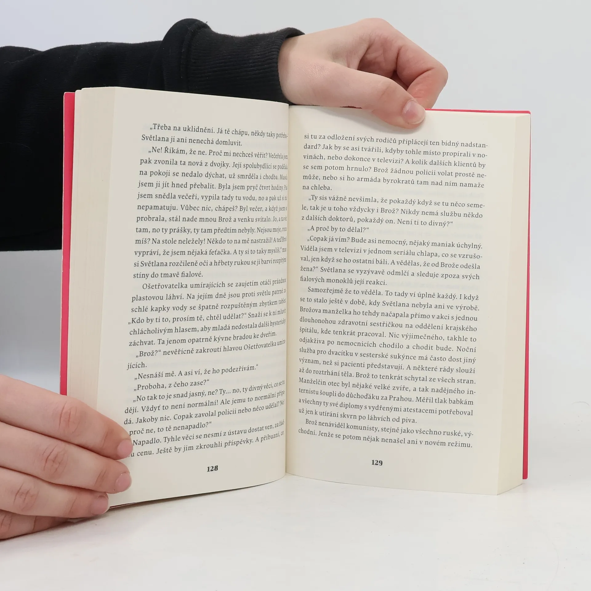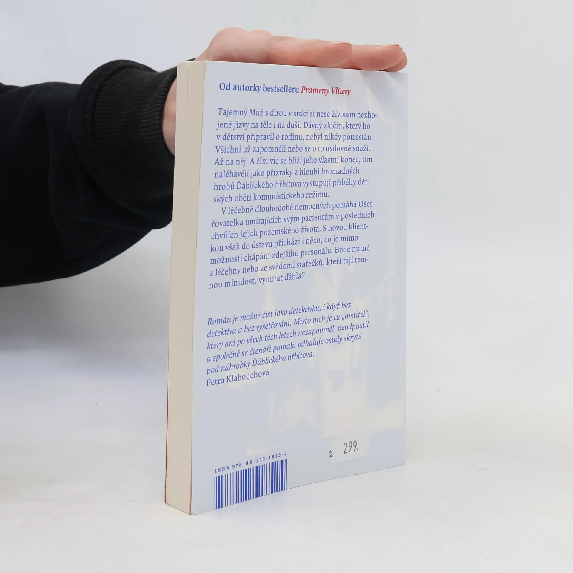Román o temných pozůstatcích zločinů 50. let, které i po letech chtějí svou daň... Tajemný Muž s dírou v srdci si nese životem nezhojené jizvy na těle i na duši. Dávný zločin, který ho v dětství připravil o rodinu, nebyl nikdy potrestán. Časy se mění, svět kolem však zůstává hluchý, slepý a němý stejně jako kdysi. Všichni už zapomněli nebo se o to usilovně snaží. Až na něj. Spravedlnost se nekoná a tak musí konat on. Čím víc se blíží jeho vlastní konec, tím naléhavěji jako přízraky z hloubi hromadných hrobů Ďáblického hřbitova vystupují příběhy dětských obětí komunistického režimu. V léčebně dlouhodobě nemocných Ošetřovatelka umírajících pomáhá svým pacientům v posledních chvílích jejich pozemského života. S novou klientkou však do ústavu přichází i něco, co je mimo možnosti chápání zdejšího personálu. Bude nutné z léčebny nebo ze svědomí stařečků, kteří tají temnou minulost, vymítat ďábla? Nakladatelská anotace.