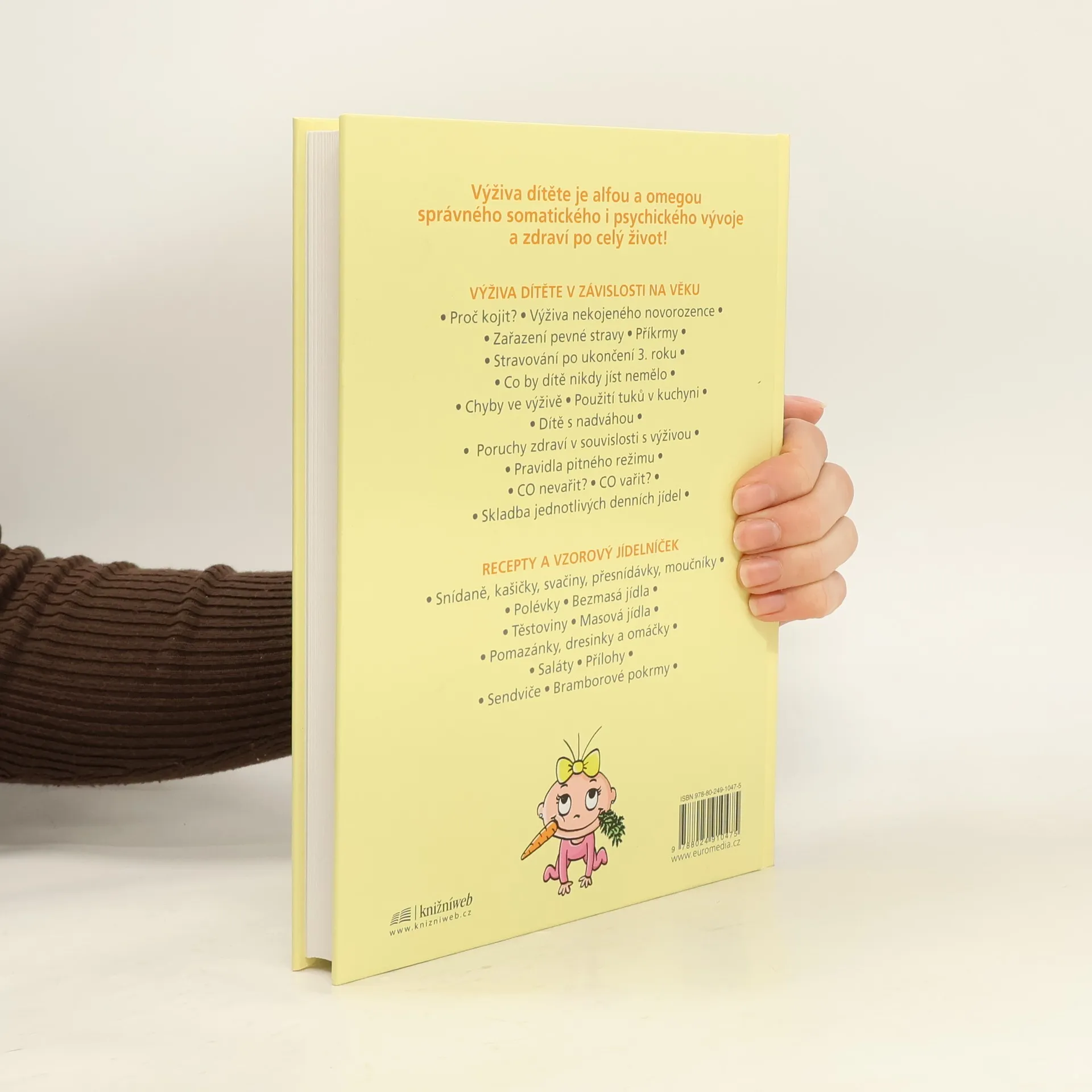 Výživa dítěte je alfou a omegou správného somatického i psychického vývoje a zdraví po celý život! Výživa dítěte v závislosti na věku o Proč kojit? o Výživa nekojeného kojence o Zařazení pevné stravy o Příkrmy o Stravování po ukončení 3. roku o Co by dítě nikdy jíst nemělo o Chyby ve výživě o Použití tuků v kuchyni o Dítě s nadváhou o Poruchy zdraví v souvislosti s výživou o Pravidla pitného režimu o CO nevařit? o CO vařit? o Skladba jednotlivých denních jídel Recepty a vzorový jídelníček o Snídaně, kašičky, svačiny, přesnídávky, moučníky o Polévky o Bezmasá jídla o Těstoviny o Masová jídla o Pomazánky, dresinky a omáčky o Saláty o Přílohy o Sendviče o Bramborové pokrmy