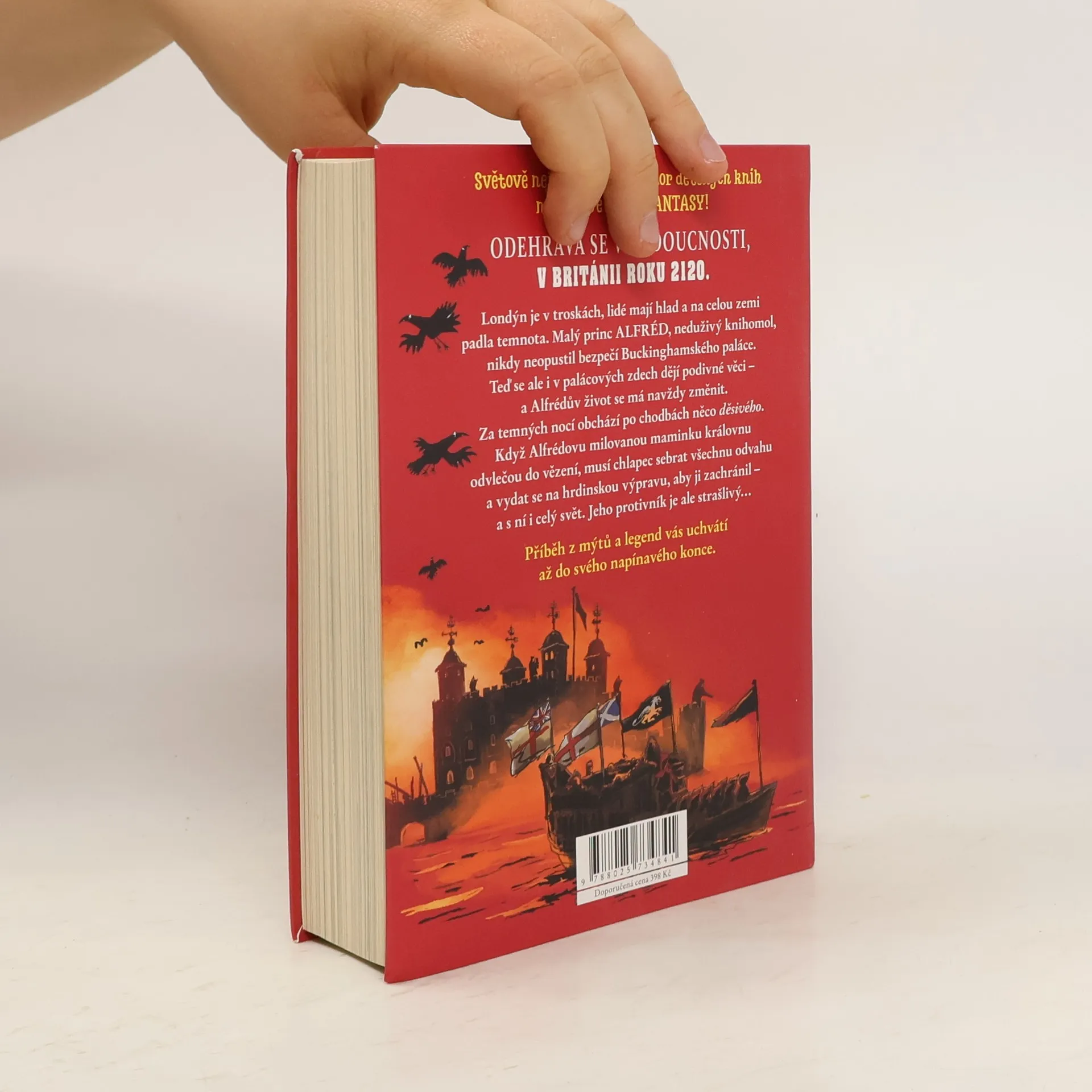 Světově nejprodávanější autor dětských knih napsal své první fantasy! Odehrává se v Británii o sto let později, tedy v roce 2120. Londýn je v troskách, lidé mají hlad a na celou zemi padla temnota. Malý princ Alfréd, neduživý knihomol, nikdy neopustil bezpečí Buckinghamského paláce. Teď se ale i v palácových zdech dějí podivné věci - a Alfrédův život se má navždy změnit. Za temných nocí obchází po chodbách něco strašlivého. Když Alfrédovu milovanou maminku královnu odvlečou do Toweru, musí chlapec sebrat všechnu odvahu a vydat se na hrdinskou výpravu, aby ji zachránil - a s ní i celý svět. Jeho protivník je ale strašlivý. Příběh z mýtů a legend vás uchvátí až do svého napínavého konce. . Knihu opět ilustroval báječný Tony Ross.