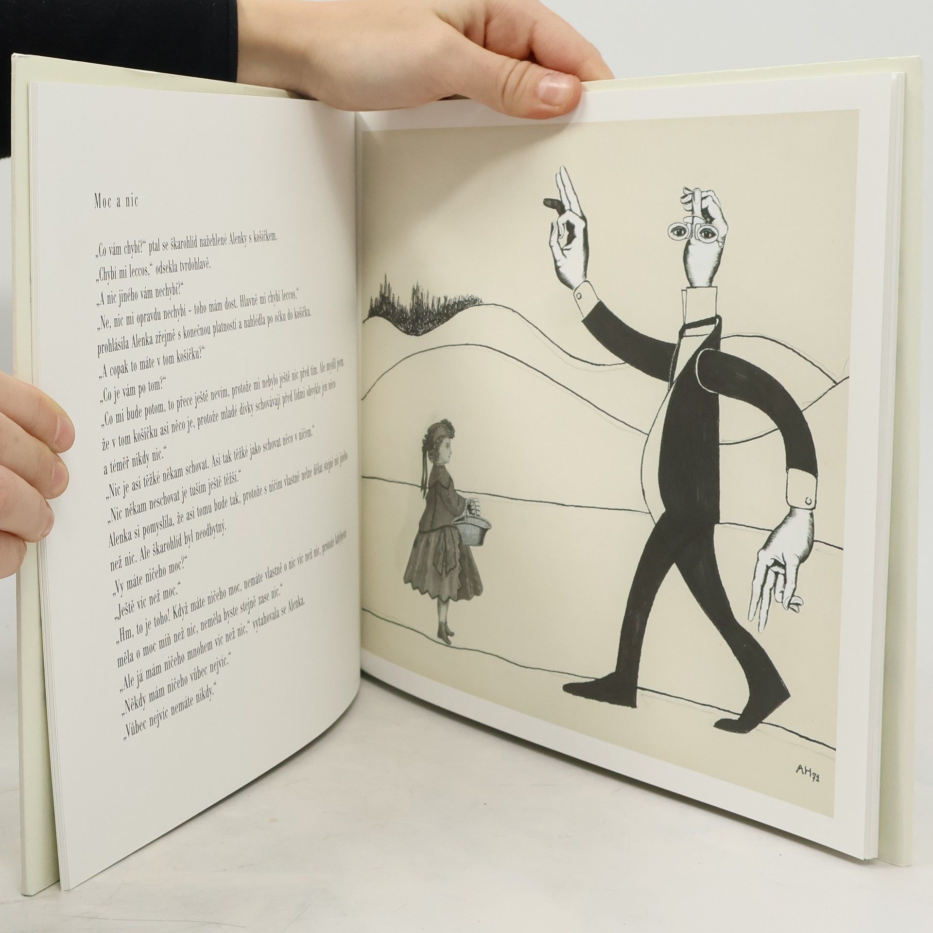 Tuto knížku odposlouchané dětské filosofie napsal a nakreslil Adolf Hoffmeister - dětem, které četly Alenku v říši divů anebo Alenku za zrcadlem od Lewise Carolla /1958-1971/. Nově vydaná kniha pro děti i dospělé obsahuje 12 celostránkových ilustrací - koláží Adolfa Hoffmeistera z počátkusedmdesátých let, které doprovází hravý, částečně surrealistický text z období kolem roku 1960. Kniha vychází přesně po 50 letech od dokončení rukopisu v grafické úpravě Adolfova syna Adama Hoffmeistera.