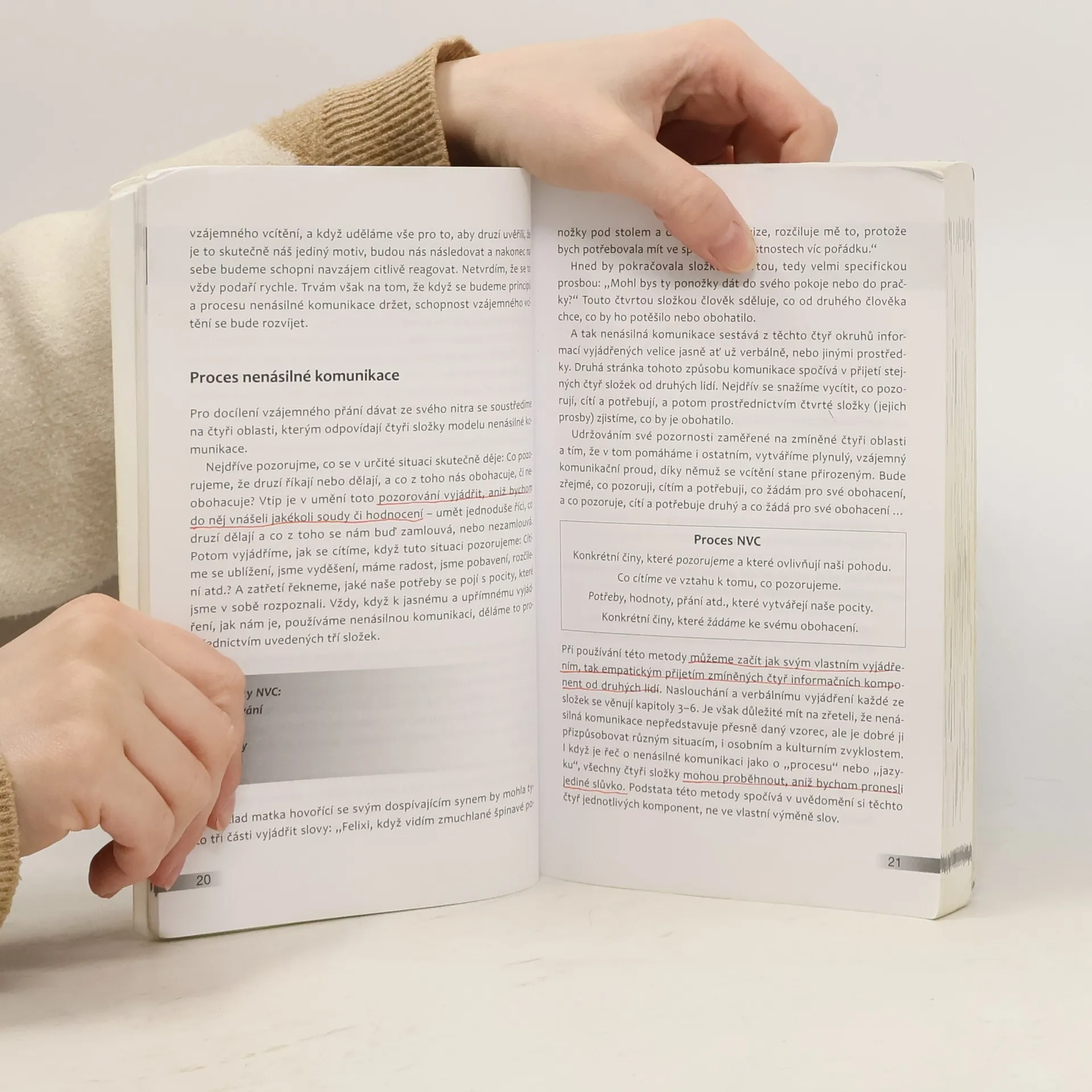 Většina z nás byla vychovávána k posuzování, soutěživosti, ke kladení požadavků a ke komunikaci s lidmi v termínech, co je „správné“ a co „špatné“. Komunikace v tomto smyslu často vede k nedorozuměním. Koncept NVC (Nonviolent Communication) – tedy koncept nenásilné komunikace – který rozvinul M. B. Rosenberg, představuje ucelený výcvik v komunikaci a je založen na naslouchání sobě i partnerovi, ochotě vnímat potřeby a pocity vlastní i druhého. Metoda NVC osvobozuje komunikaci od negativních zkušeností, pomáhá překonávat navyklé vzorce v jednání s druhými, napomáhá k řešení konfliktů a rozvíjí vztahy založené na úctě a kooperaci. Knihu ocení čtenáři se zájmem o témata efektivní komunikace, školitelé v oblasti komunikace, učitelé a vychovatelé. 4. vydání