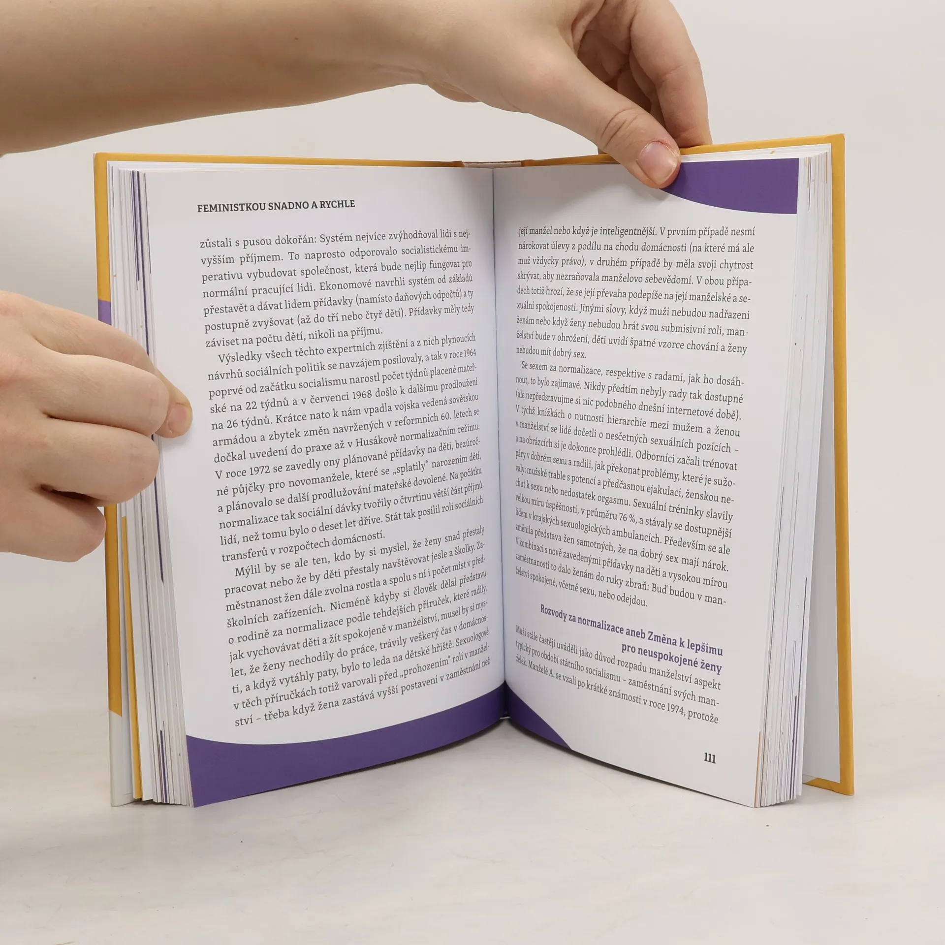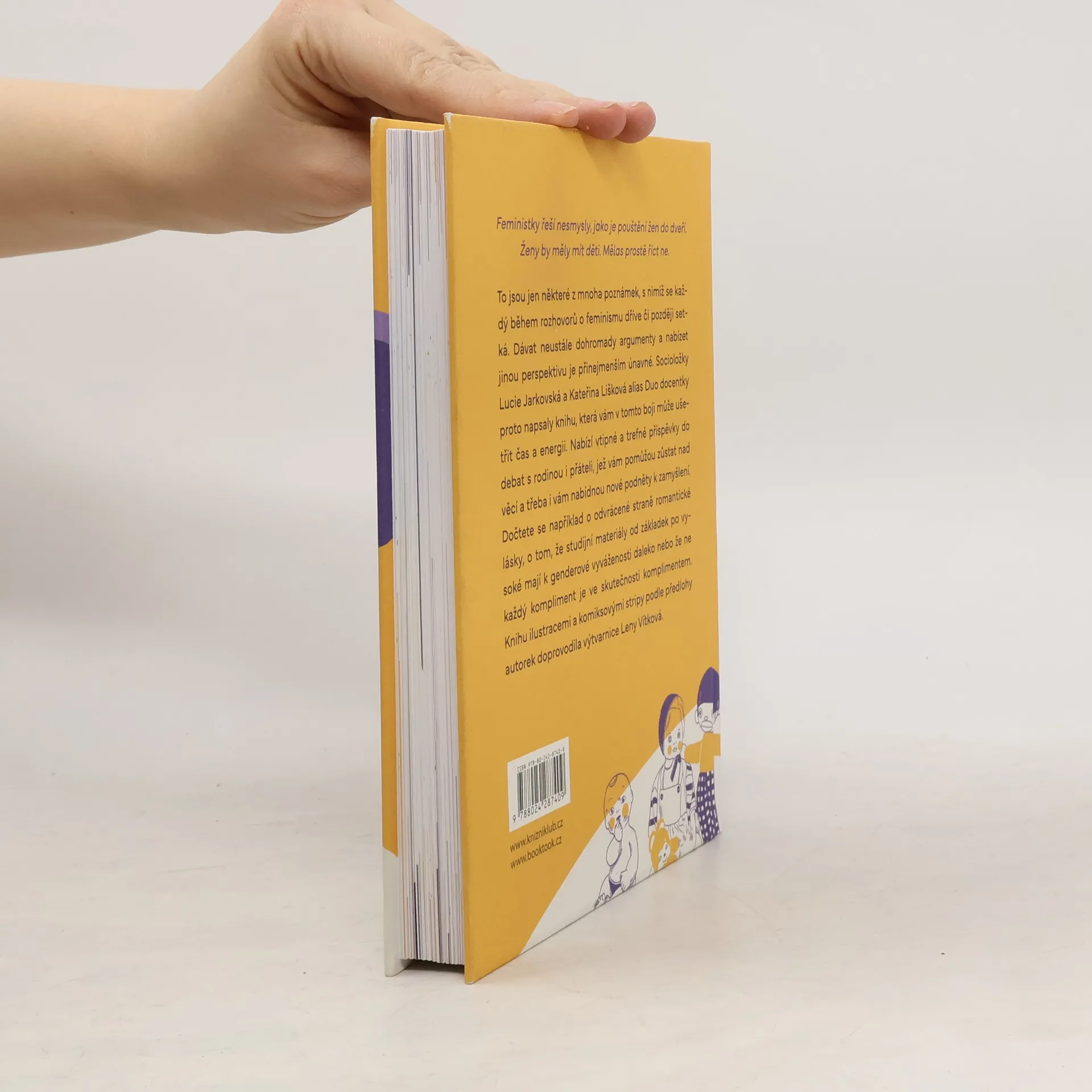 Feministky řeší nesmysly jako je pouštění žen do dveří. Ženy by měly mít děti. Mělas prostě říct ne. To jsou jen některé z mnoha poznámek, s nimiž se každý během rozhovorů o feminismu dříve či později setká. Dávat neustále dohromady argumenty a nabízet jinou perspektivu je přinejmenším únavné. Socioložky Lucie Jarkovská a Kateřina Lišková alias Duo docentky proto napsaly knihu, která vám v tomto boji může ušetřit čas a energii. Nabízí vtipné a trefné příspěvky do debat s rodinou i přáteli, jež vám pomůžou zůstat nad věcí a třeba i vám nabídnou nové podněty k zamyšlení. Dočtete se například o odvrácené straně romantické lásky, o tom, že studijní materiály od základek po vysoké mají k genderové vyváženosti daleko nebo že ne každý kompliment je ve skutečnosti komplimentem. Knihu ilustracemi a komiksovými stripy podle předlohy autorek doprovodila výtvarnice Leny Vítková.