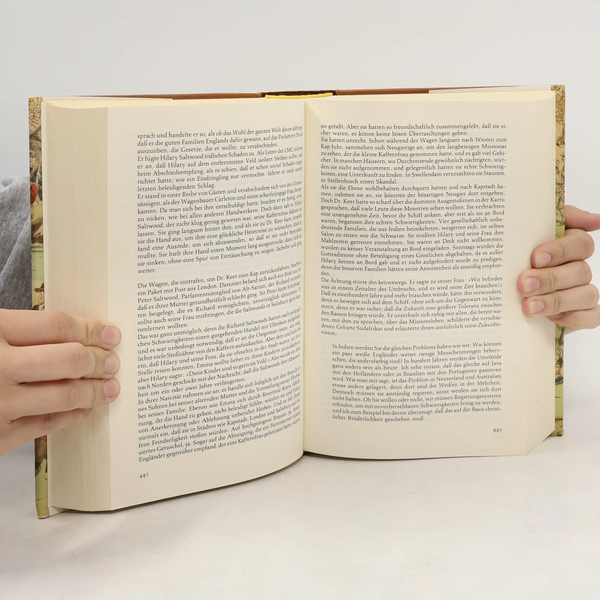 Hier geht es um die atemberaubende Landschaft Südafrikas, die den Hintergrund für das fesselnde Geschehen dieses Romans bildet. Wir begegnen den ersten Kauffahrern aus Portugal und Holland, Siedlern aus Deutschland und England, Hugenotten und Reformierten, Händlern aus Indien, Hottentotten und Buschmännern. Es wird von Goldbergwerken der sagenumworbenen Stadt Zimbabwe, vom einträglichen Handel mit Gewürzen und Sklaven, vom "großen Treck", den Burenkriegen und grausamen Folgen einer schändlichen Rassenpolitik. So verweben sich vor dem Auge des Lesers dieverschiedenen Stränge der Handlung zu einem gigantischen Panorama dieses zugleich faszinierenden und furchtgebietenden Landes und seiner Menschen.