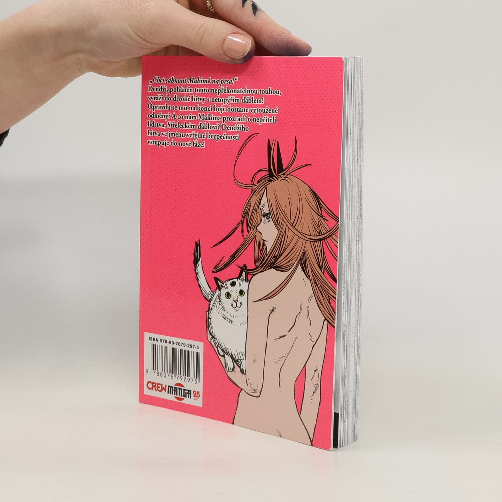 „Chci šáhnout Makimě na prsa!“Dendži, poháněn touto nepřekonatelnou touhou, vyráží do divoké bitvy s netopýřím ďáblem! Dostane se mu na konci boje opravdu vytoužené odměny? A co nám Makima prozradí o nepříteli lidstva, Střeleckém ďáblovi? Dendžiho bitva ve jménu veřejné bezpečnosti vstupuje do nové fáze!