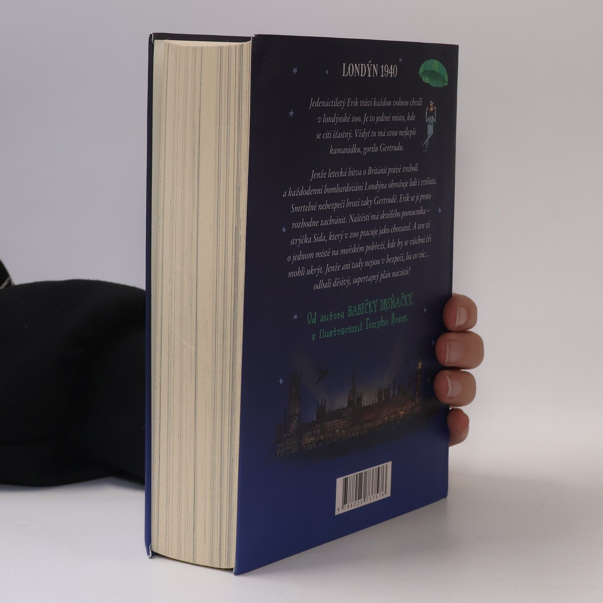 Píše se rok 1940. Bitva o Británii vrcholí. Německá Luftwaffe se snaží zničit britské Královské letectvo a získat vzdušnou převahu nad Lamanšským průlivem. Pokud se to nacistům podaří, dobytí Británie pro ně už bude hračka. Jedenáctiletý Erik tráví každou volnou chvíli v londýnské zoo. Je to jediné místo, kde se cítí šťastný. A jedno ze zvířat mu obzvlášť přirostlo k srdci: gorila Gertruda. Jenže každodenní bombardování města znamená velké ohrožení pro lidi i zvířata. Erik se proto rozhodne milovanou Gertrudu zachránit. Naštěstí má skvělého pomocníka – strýčka Sida, který v zoo pracuje jako chovatel. Podaří se jim ukrýt na mořském pobřeží. Jejich pocit bezpečí ale vezme za své, když odhalí supertajný plán nacistů… David Walliams, autor veleúspěšné Babičky drsňačky, napsal akční, bondovsky laděný příběh z druhé světové války, v němž však není nouze ani o humor. David Walliams je úkaz: děti jeho knihy milují, z každé se stane okamžitě bestseller.