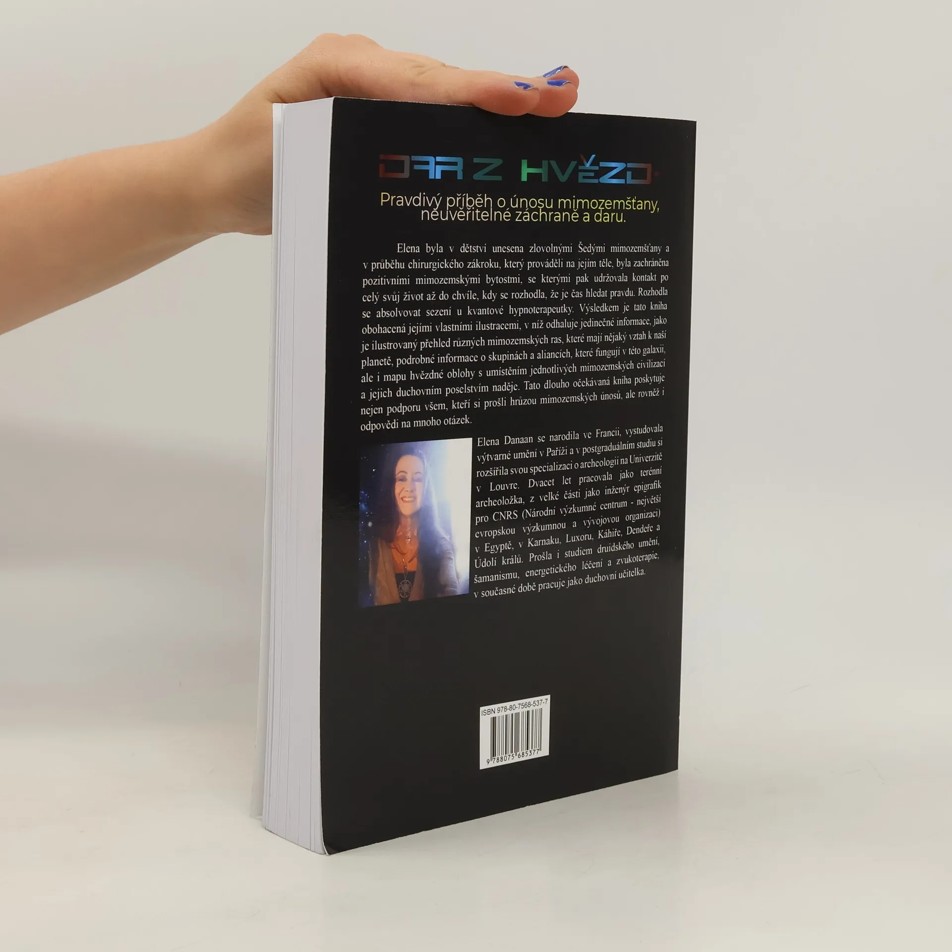 Pravdivý příběh o únosu mimozemšťany, neuvěřitelné záchraně a daru.Elena byla v dětství unesena zlovolnými Šedými mimozemšťany a v průběhu chirurgického zákroku, který prováděli na jejím těle, byla zachráněna pozitivními mimozemskými bytostmi, se kterými pak udržovala kontakt po celý svůj život až do chvíle, kdy se rozhodla, že je čas hledat pravdu. Rozhodla se absolvovat sezení u kvantové hypnoterapeutky. Výsledkem je tato kniha obohacená jejími vlastními ilustracemi, v níž odhaluje jedinečné informace, jako je ilustrovaný přehled různých mimozemských ras, které mají nějaký vztah k naší planetě, podrobné informace o skupinách a aliancích, které fungují v této galaxii, ale i mapu hvězdné oblohy s umístěním jednotlivých mimozemských civilizací a jejich duchovním poselstvím naděje. Tato dlouho očekávaná kniha poskytuje nejen podporu všem, kteří si prošli hrůzou mimozemských únosů, ale rovněž i odpovědi na mnoho otázek.