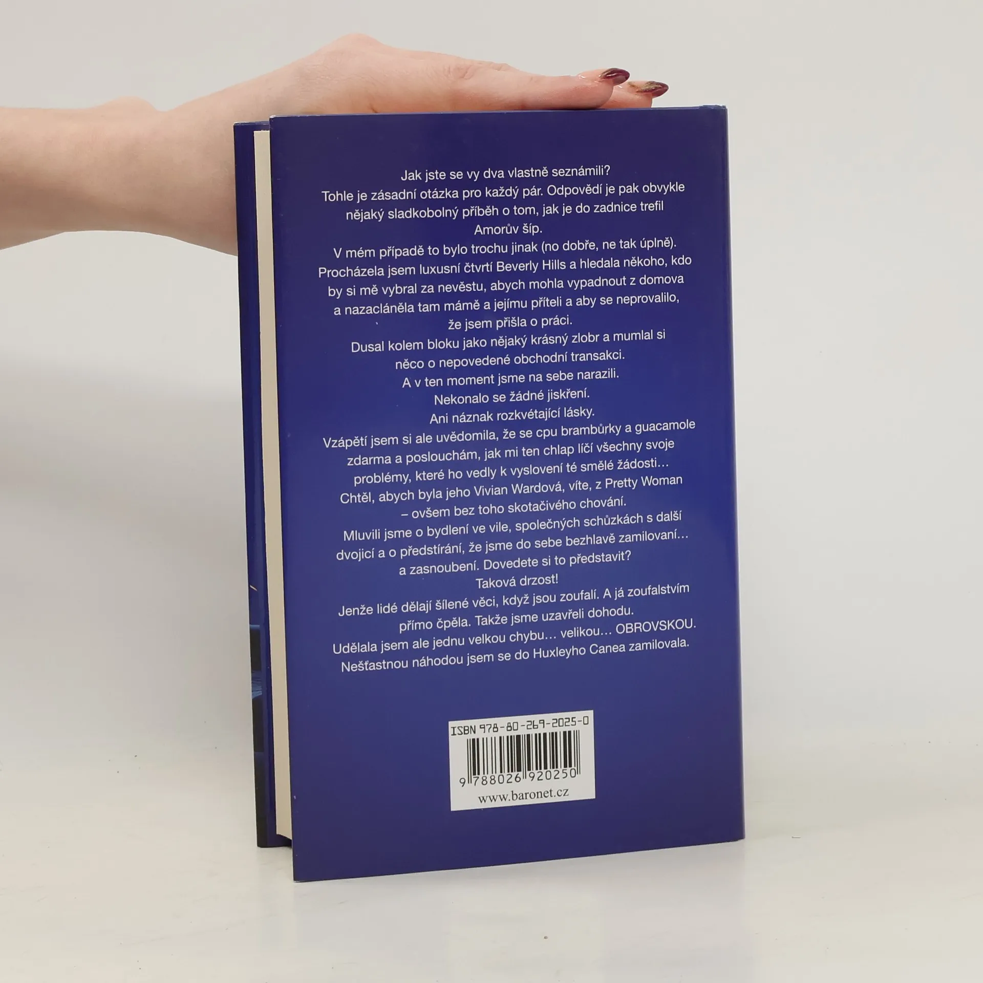 Jak jste se vy dva seznámili?Tohle je zásadní otázka pro každý pár. Odpovědí je pak obvykle nějaký sladkobolný příběh o tom, jak je do zadnice trefil Amorův šíp. V mém případě to bylo trochu jinak (no dobře, ne tak úplně). Procházela jsem luxusní čtvrtí Beverly Hills a hledala někoho, kdo by si mě vybral za nevěstu, víte, někoho, na koho by žárlil můj osudový muž, který mi právě dal kopačky. Dusal kolem bloku jako nějaký krásný zlobr, mumlal si něco o nepovedené obchodní transakci a snažil se z toho vykroutit. A v ten moment jsme na sebe narazili.Nekonalo se žádné jiskření. Ani náznak rozkvétající lásky. Vzápětí jsem si ale uvědomila, že se cpu brambůrky a guacamole zdarma a poslouchám, jak mi ten chlap líčí všechny svoje problémy, které ho vedly k vyslovení té smělé žádosti… Chtěl, abych byla jeho Vivian Wardová, víte, z Pretty Woman – ovšem bez toho skotačivého chování. Mluvili jsme o bydlení ve vile, společných schůzkách s další dvojicí a o předstírání, že jsme do sebe bezhlavě zamilovaní… a zasnoubení. Dovedete si to představit? Taková drzost!Jenže lidé dělají šílené věci, když jsou zoufalí. A já zoufalstvím přímo čpěla. Takže jsme uzavřeli dohodu. Udělala jsem ale jednu velkou chybu… velikou… OBROVSKOU? Nešťastnou náhodou jsem se do Huxleyho Canea zamilovala.