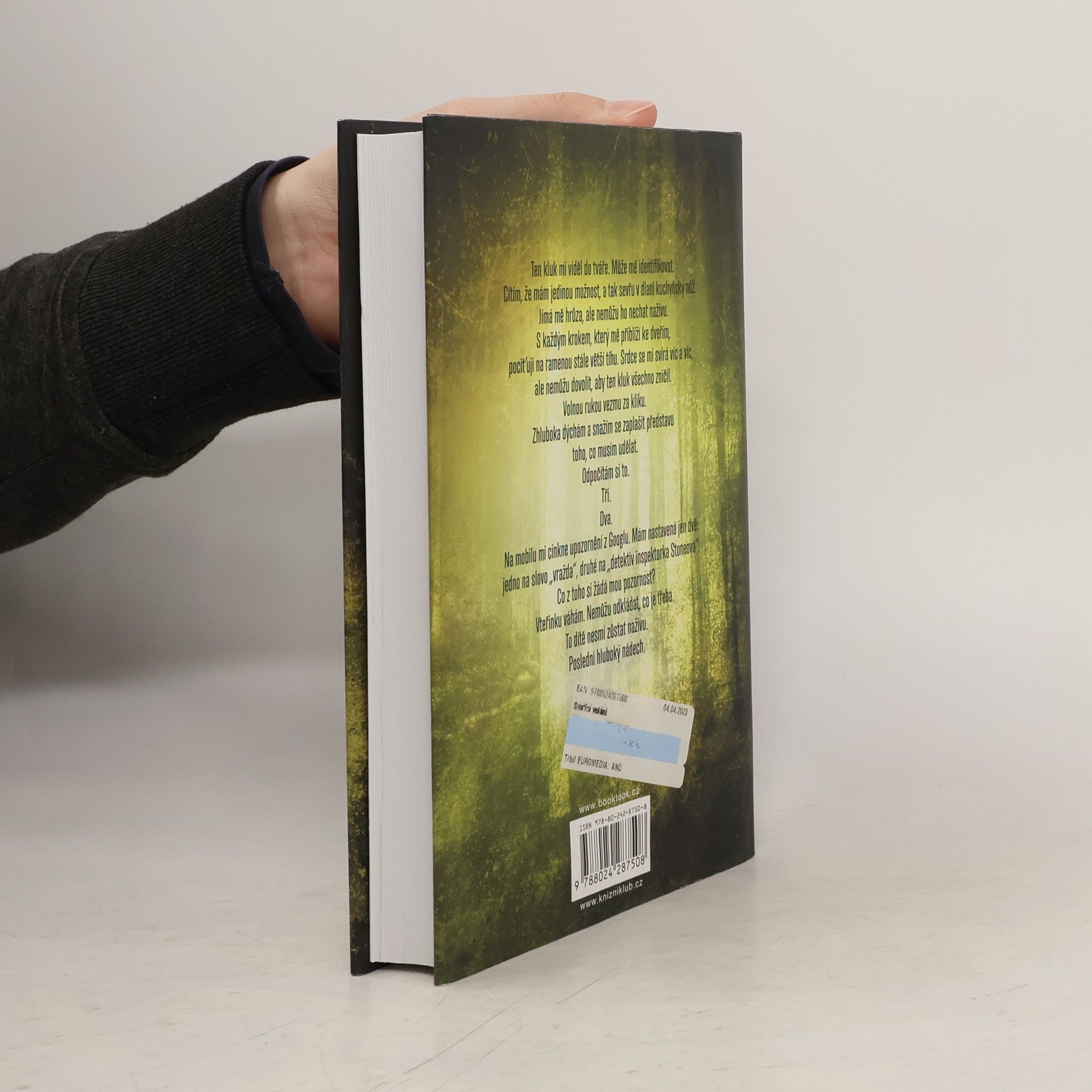 Musíš mi zabránit, abych ublížil někomu jinému. Nechci dělat tyhle hrozné věci. Pomozte mi, než budu nucen to udělat znovu. A udělám to znovu, protože nemám na výběr. Nikdy jsem neměl na výběr.V rušném nákupním centru svírá malá holčička plyšového medvídka a drží se ho v nepřítomnosti své matky Katriny. O několik hodin později je v opuštěné budově objeveno Katrinino tělo. Pro detektivku Kim Stoneovou to vypadá jako rychlá a účinná vražda. Ale Kiminy instinkty jí říkají, že v této nesmyslné vraždě je víc, než se na první pohled zdá. Jaký byl motiv zabití mladé matky na nákupech s jejím dítětem?O několik dní později je v místním parku nalezena druhá žena, jejíž krk je zlomený stejně jako Katriinin, a její šestiletý syn se pohřešuje.Se svou kolegyní, detektivkou Stacey Woodovou, která pracuje na dalším nevyřešeném zločinu, a s členem týmu, truchlící nad ztrátou blízkého příbuzného, se Kim snaží proniknout do toho, co se rychle stává složitým případem. A když na Kimině stole přistane ručně psaný dopis od vraha adresovaný jí a prosící o pomoc, ví, že čas přivést malého chlapce živého domů utíká. S podporou analytika písma a profilovače se Kim a tým začnou dostávat do mysli vraha a učiní šokující objev. Některé z obětí mají na zápěstích škrábance.Nejsou to ale žádné náhodné škrábance. Vrah je používá ke komunikaci s někým. Otázkou je... s kým?A pokud to Kim brzy nezjistí, zemře další nevinná duše.