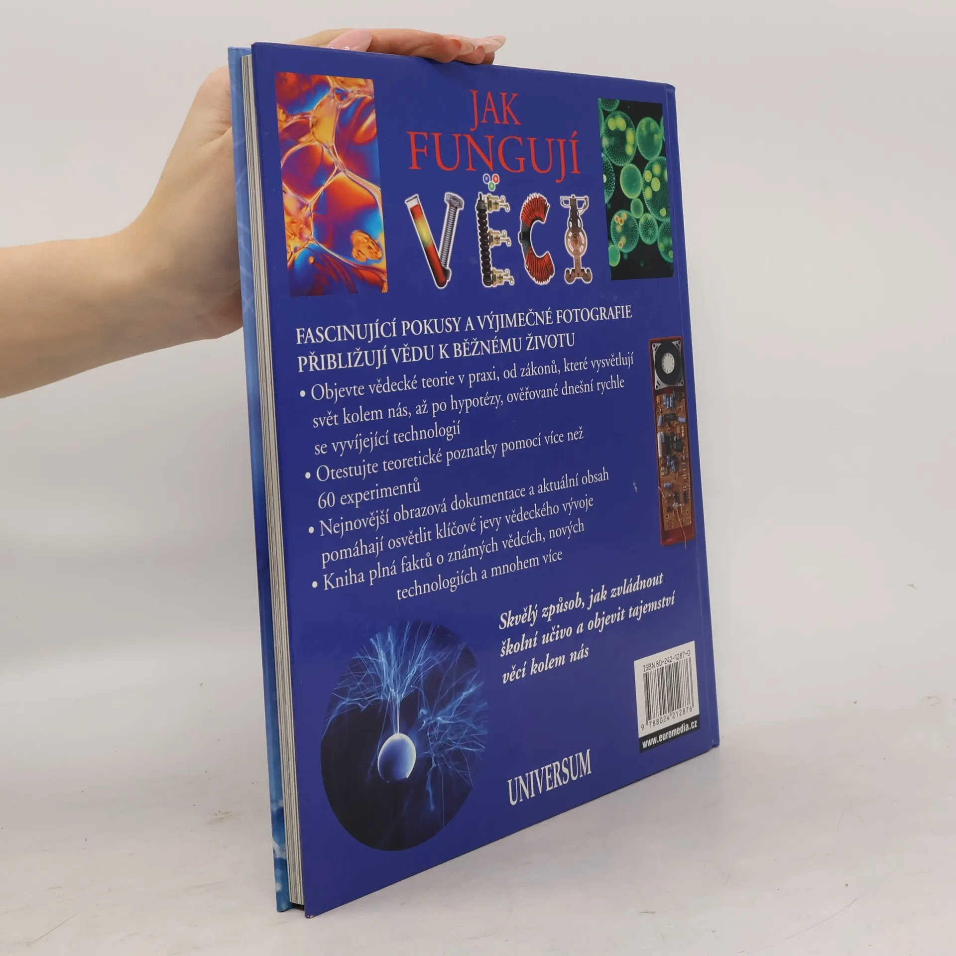 Od blesků až po robotiku, tato kniha nahlíží pod pokličku vědy a dává nám příležitost experimentovat s teoriemi podle vlastního uvážení. Odkryjte budoucnost Jestliže se chcete dozvědět, jak vznikají myriády barev, které tvoří polární záři, nebo když chcete pochopit, proč je možné vznášet ve vodách Mrtvého moře, pak je tato kniha určena právě vám. Vysvětluje věci kolem nás jasným a srozumitelným jazykem, pomáhá si při tom vynikajícím obrazovým doprovodem. Můžete tak přijít na kloub a ověřit přírodní zákony i za pomoci dobrodružných experimentů, které najdete v každé kapitole - od vytvoření vlastního polymerového řetězce až po poznání vlastností raketových motorů. Jednoduchý průvodce životem Precizní, ale přitom nenásilné vysvětlení základních chemických a fyzikálních témat v knize nám pomáhá uvědomit si, jak důležitá je věda pro dnešního člověka a jak každý další objev může změnit náš svět. Jak v obastech materiálního světa, tak na poli magnetismu a elektřiny, seznámíme se s příklady