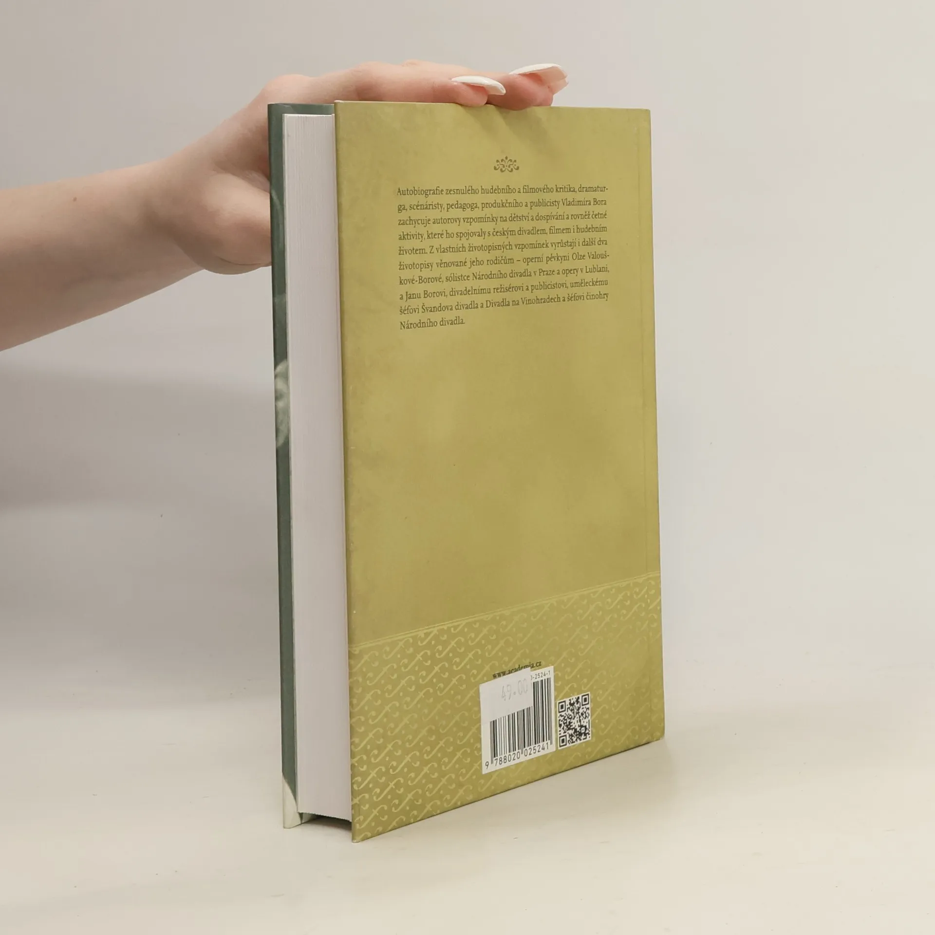 Autobiografie zesnulého hudebního a filmového kritika, dramaturga, scénáristy, pedagoga, produkčního a publicisty Vladimíra Bora zachycuje autorovy vzpomínky na dětství a dospívání a rovněž četné aktivity, které ho spojovaly s českým divadlem, filmem i hudebním životem. Z vlastních životopisných vzpomínek vyrůstají i další dva životopisy věnované jeho rodičům – operní pěvkyni Olze Valouškové-Borové, sólistce Národního divadla v Praze a opery v Lublani, a Janu Borovi, divadelnímu režisérovi a publicistovi, uměleckému šéfovi Švandova divadla a Divadla na Vinohradech a šéfovi činohry Národního divadla.