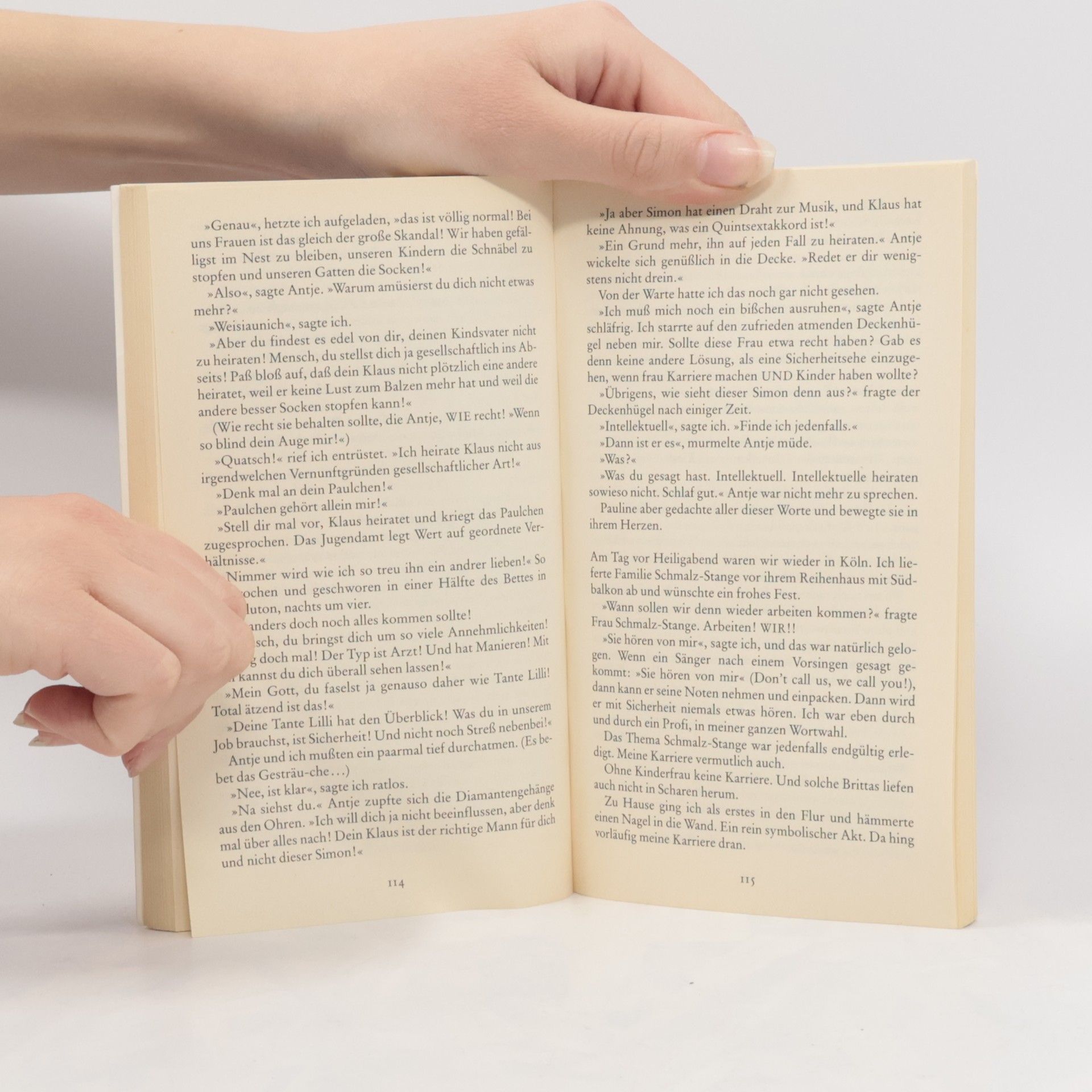 Pauline hat Wut. Sie hat doch nicht zehn Jahre lang ihren Kehlkopf strapaziert und sich sämtliche Partien, die für ihre minderbemittelten Stimmbänder in Frage kommen, in den Schädel gehämmert, um jetzt einem gediegenen Gatten die Blümchentapeten wohnlicher zu gestalten, als warmherziger Vordergrund! Sie ist eine Karrierefrau mit der nicht zu unterdrückenden Berufung, ihre Stimmbänder im Winde der Öffentlichkeit flattern zu lassen! Auch ein uneheliches Kind kann sie nicht davon abhalten, weiterhin hemmungslos ihrem ungezügelten Selbstverwirklichungsdrang zu frönen. Emanzipiert und lebensfroh wie eh macht sie sich mitsamt Klötzchen am Busen auf den dornenreichen Weg einer alleinerziehenden Diva. Dabei trifft sie auf Simon, den exzentrischen Opernsänger, der ihr durch rein gar nichts im Wege steht.
