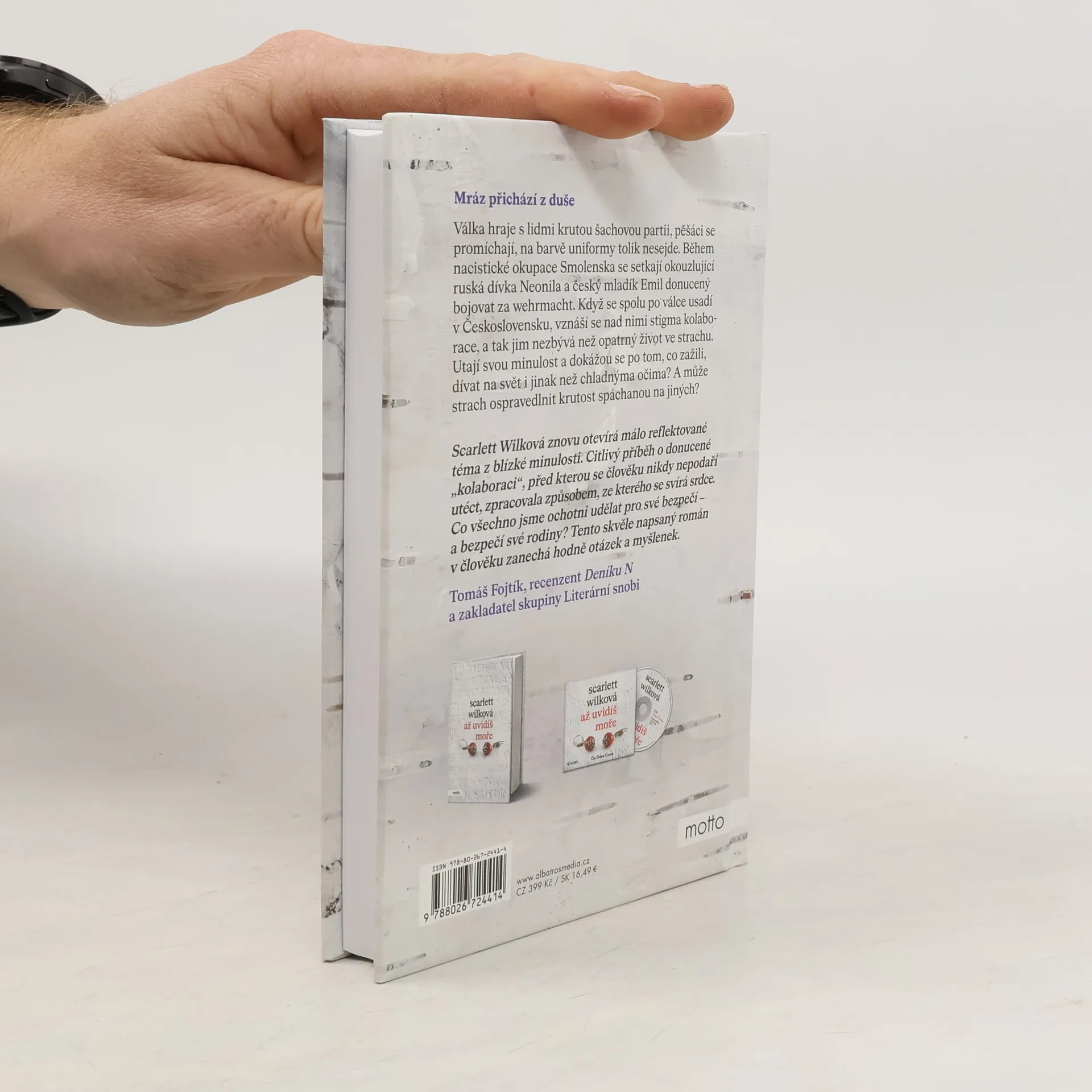 Mráz přichází z duše. Historický román od autorky bestselleru Až uvidíš moře.Válka hraje s lidmi krutou šachovou partii, pěšáci se promíchají, na barvě uniformy tolik nesejde. Během nacistické okupace Smolenska se setkají okouzlující ruská dívka Neonila a český mladík Emil donucený bojovat za wehrmacht. Když se spolu po válce usadí v Československu, vznáší se nad nimi stigma kolaborace, a tak jim nezbývá než opatrný život ve strachu. Utají svou minulost a dokážou se po tom, co zažili, dívat na svět i jinak než chladnýma očima? A může strach ospravedlnit krutost spáchanou na jiných? Scarlett Wilková přichází s druhým románem, v němž opět otevírá citlivé a málo reflektované téma novodobých dějin.