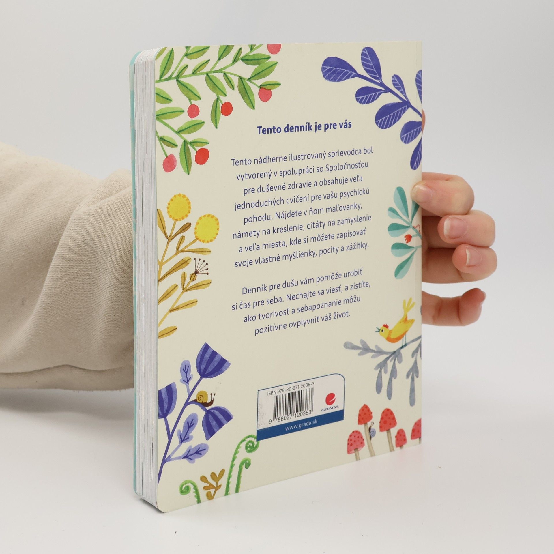 Tento nádherne ilustrovaný sprievodca obsahuje veľa jednoduchých cvičení pre vašu psychickú pohodu. Nájdete v ňom maľovanky, námety na kreslenie, citáty na zamyslenie a veľa miesta, kde si môžete zapisovať svoje vlastné myšlienky, pocity a zážitky. Denník pre dušu vám pomôže urobiť si čas pre seba. Nechajte sa viesť, a zistíte, ako tvorivosť a sebapoznanie môžu pozitívne ovplyvniť váš život. Niekedy nám život môže pripadať veľmi ťažký. Nie je ľahké nájsť si čas na seba, keďže sa neprestajne deje toľko vecí. No každý z nás si zaslúži byť v pohode, a cieľom tejto knižky je, aby ste sa dobre cítili. Pomôže vám nabrať silu, získať nadhľad, lepšie poznať seba samého, slobodnejšie sa vyjadrovať a rozvíjať tvorivú stránku svojej osobnosti. Záleží iba na vás, ako tento denník využijete – či ako denník alebo ako zbierku zoznamov, skicár či podložku. Nech si vyberiete čokoľvek, dúfame, že sa budete dobre zabávať. A tiež dúfame, že vám to pomôže.