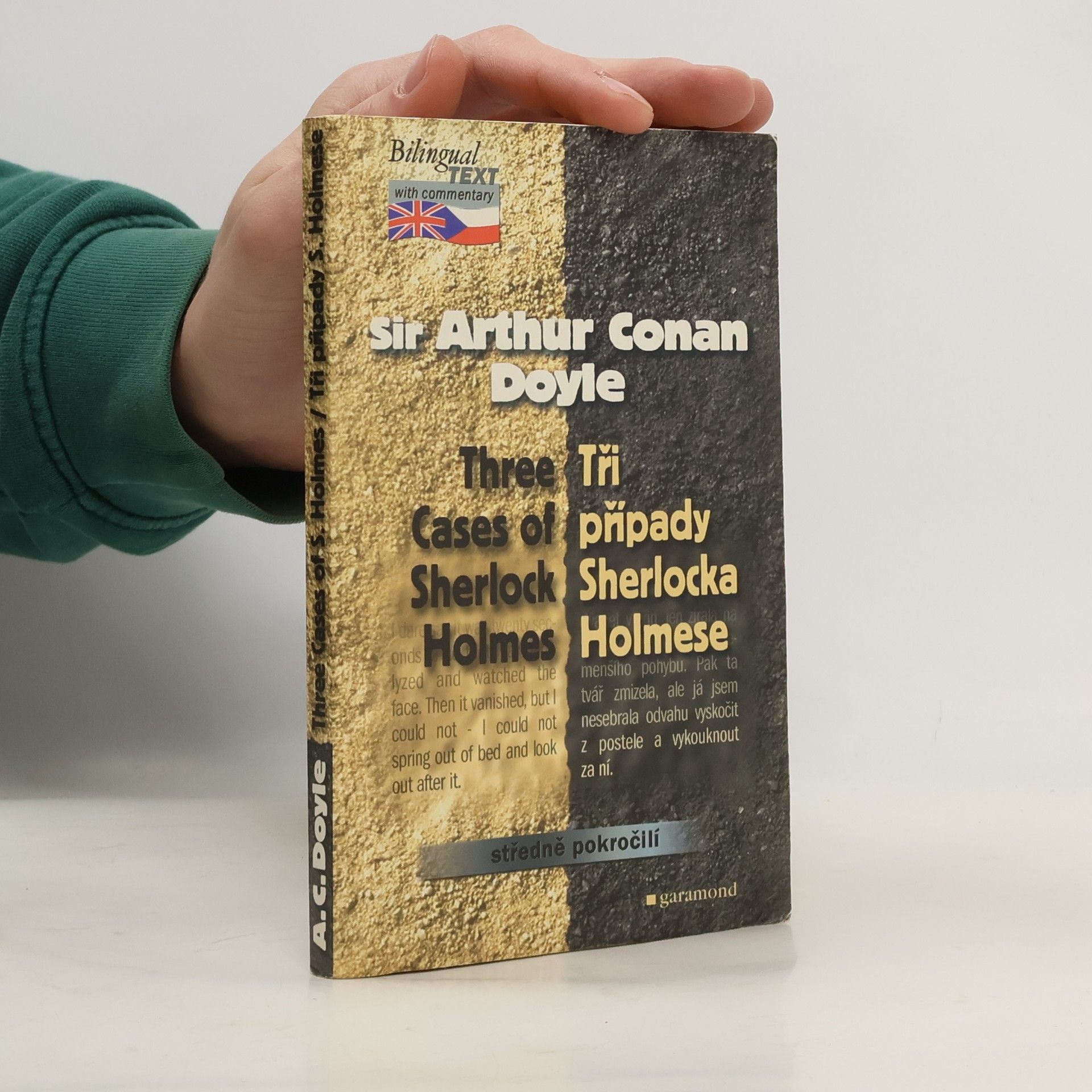 Tři holmesovské případy Lví hříva, Podnájemnice v závoji a Šplhající muž v dvojjazyčném vydání opatřeném lexikálním a gramatickým komentářem.
