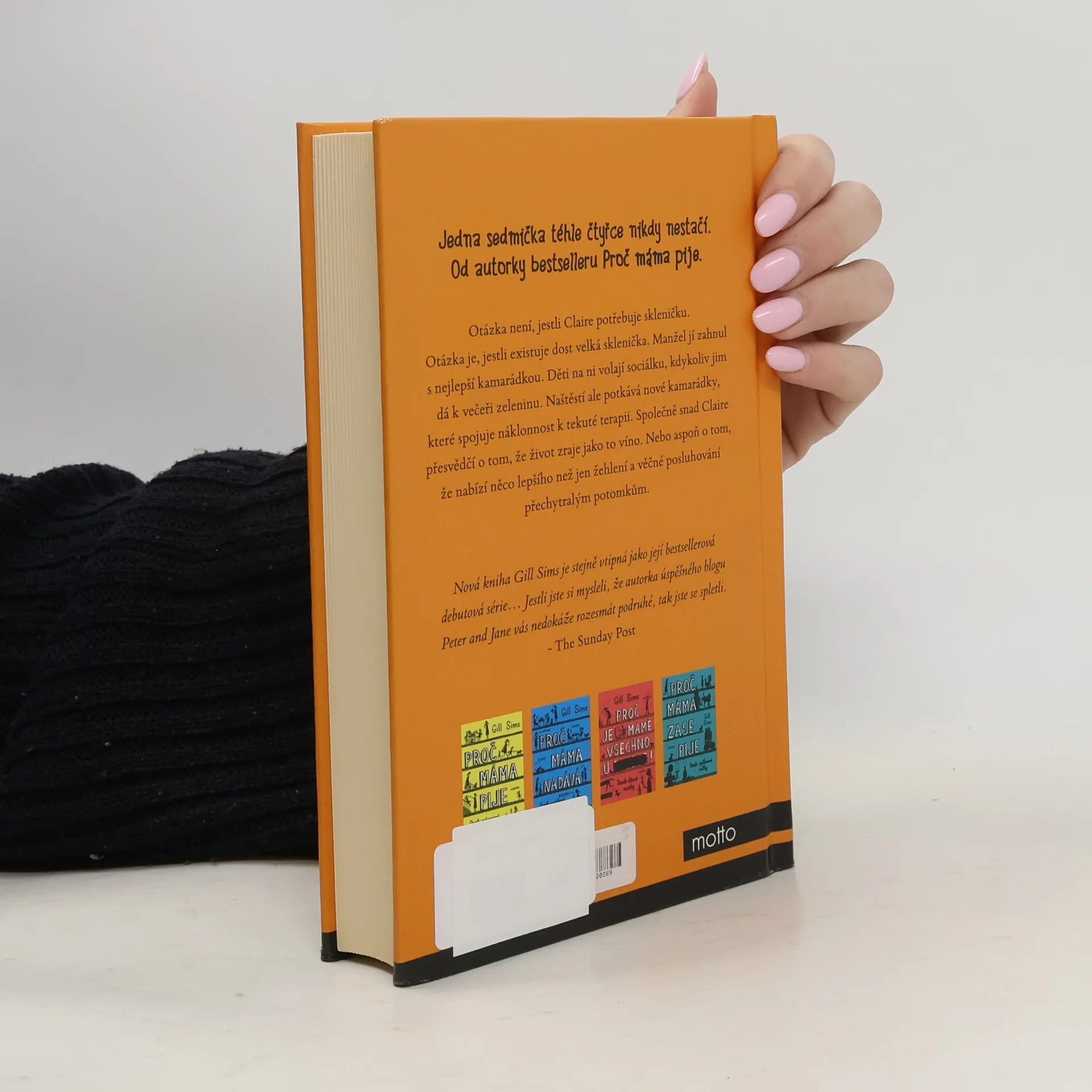 Jedna sedmička téhle čtyřce nikdy nestačí. Od autorky bestselleru Proč máma pije. Otázka není, jestli Claire potřebuje skleničku. Otázka je, jestli existuje dost velká sklenička. Manžel jí zahnul s nejlepší kamarádkou. Děti na ni volají sociálku, kdykoliv jim dá k večeři zeleninu. Naštěstí ale potkává nové kamarádky, které spojuje náklonnost k tekuté terapii. Společně snad Claire přesvědčí o tom, že život zraje jako to víno. Nebo aspoň o tom, že nabízí něco lepšího než jen žehlení a věčné posluhování přechytralým potomkům.