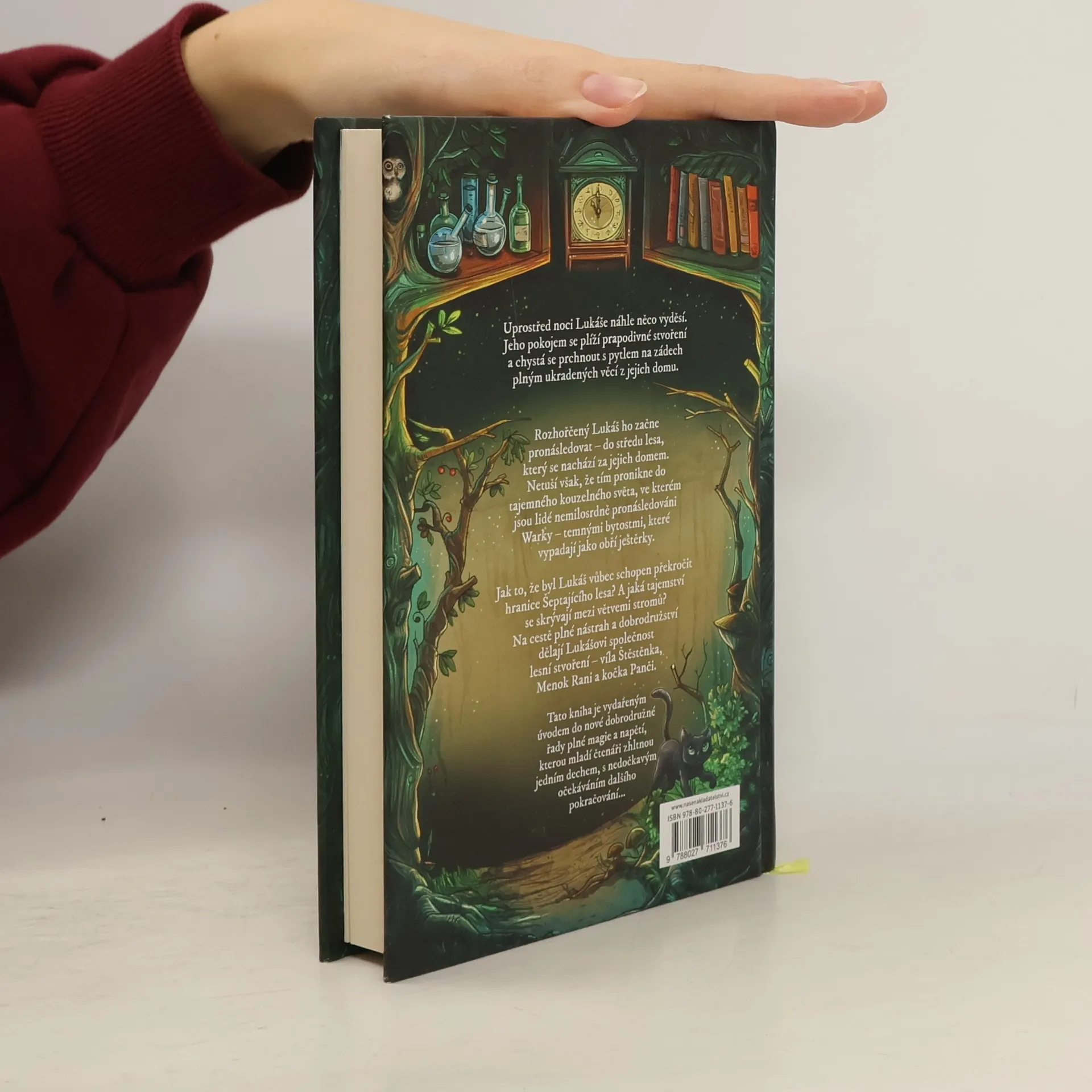 Uprostřed noci Lukáše náhle něco vyděsilo. Jeho pokojem se plížilo stvoření podobné šotkovi a chystalo se prchnout s pytlem na zádech plným ukradených věcí z jejich domu. Rozhořčený Lukáš ho začne pronásledovat – do středu lesa, který se nachází za jejich domem. Netuší však, že tím pronikl do sféry kouzel zakázaného světa… Do světa, ve kterém jsou lidé nemilosrdně pronásledování Warky – temnými bytostmi, které vypadají jako stíny. Jak to, že byl Lukáš vůbec schopen překročit hranice Šeptajícího lesa? A jaká tajemství se skrývají mezi větvemi stromů? Na cestě plné nástrah a dobrodružství dělají Lukášovi společnost lesní stvoření – víla Štěstěnka, Menok Rani a kočka Panči. Tato kniha je vydařeným úvodem do nové dobrodružné řady plné magie a napětí, kterou mladí čtenáři zhltnou jedním dechem s nedočkavým očekáváním dalšího pokračování...