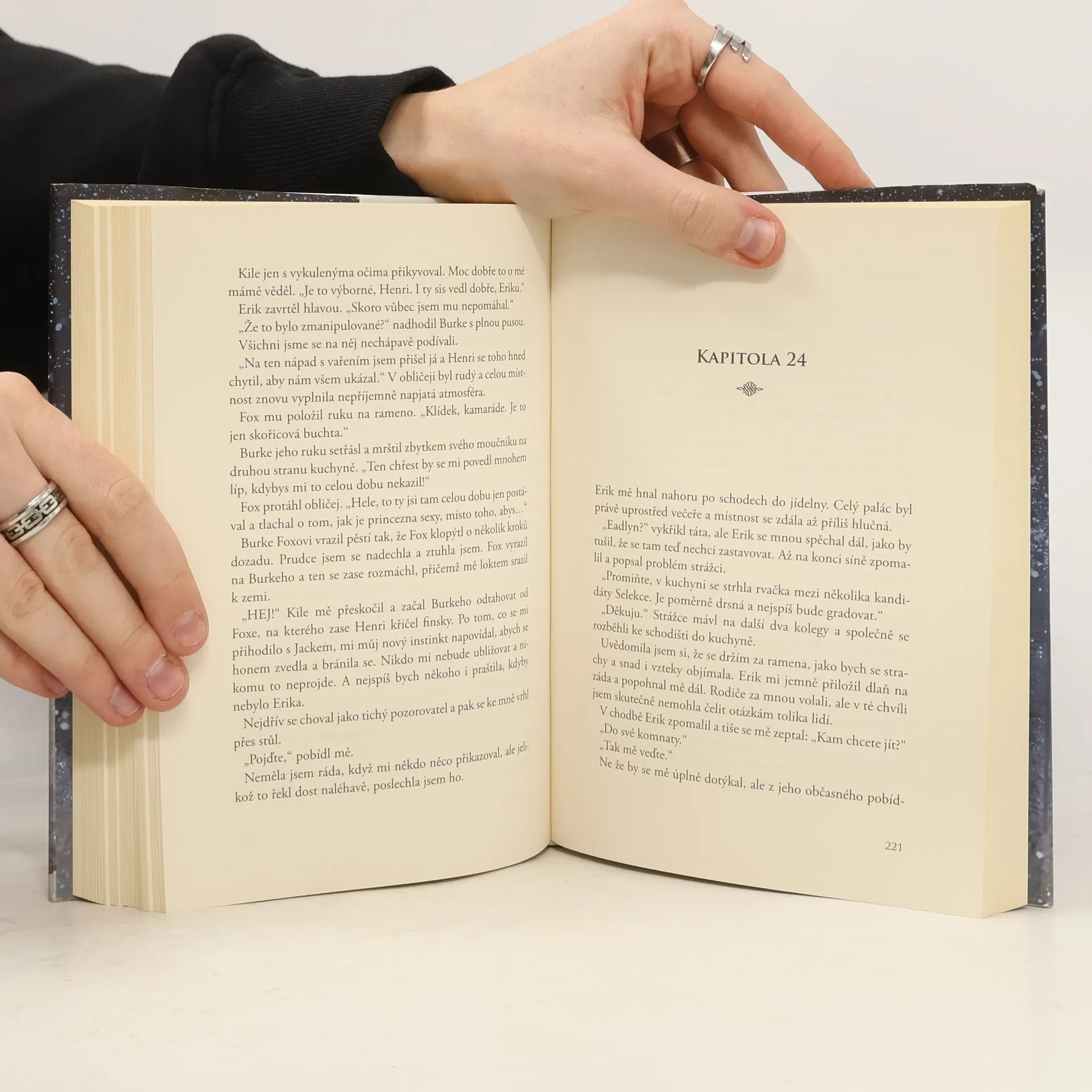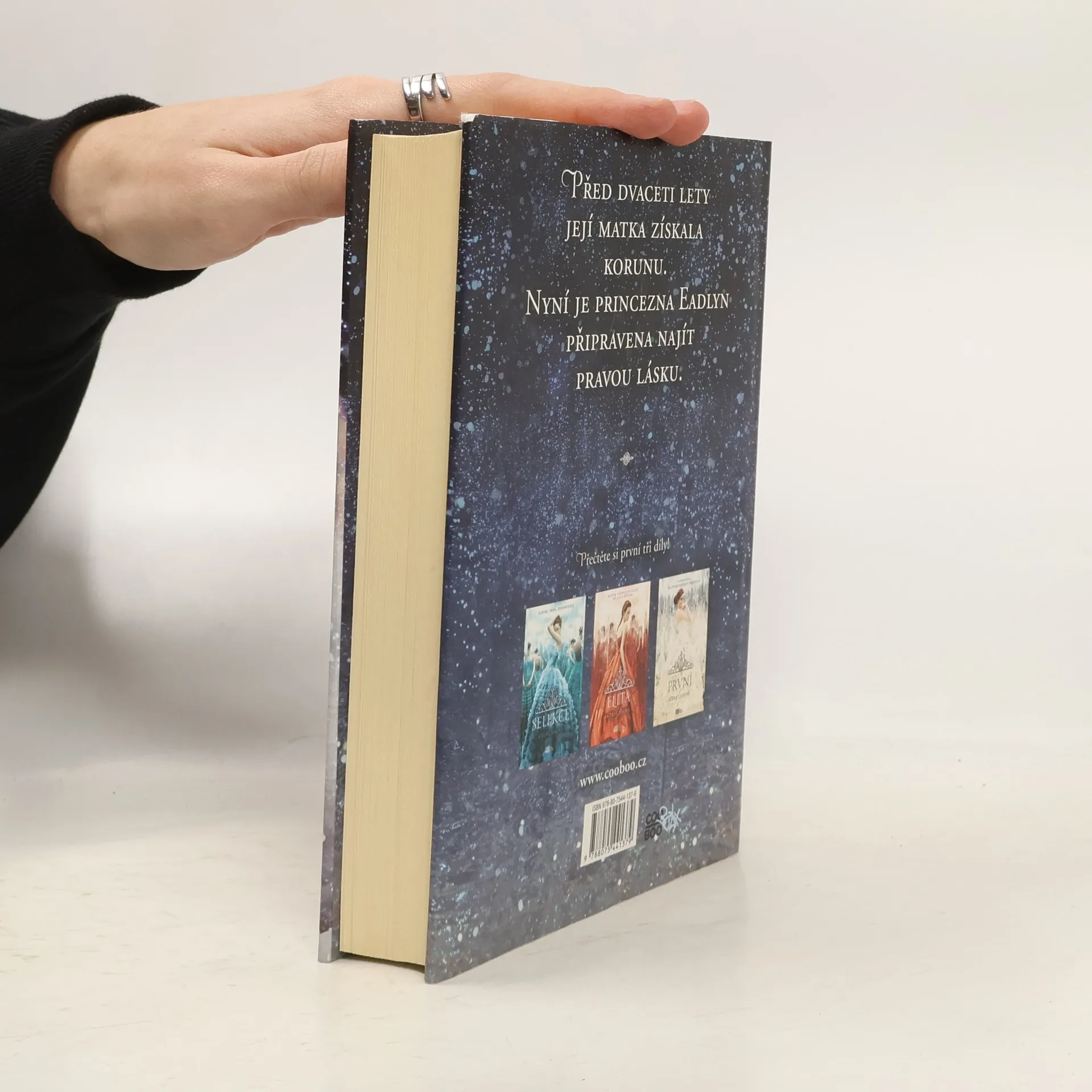 Princezna Eadlyn od malička stále dokola poslouchala vyprávění o tom, jak se potkali její rodiče. Ona ovšem ani náhodou netouží opakovat jejich romantický příběh! O svém životě však nerozhoduje sama. Její protesty jsou naprosto zbytečné, i ona si musí manžela vybrat v Selekci. Nenechte si ujít příběh další generace princeznovské Selekce!