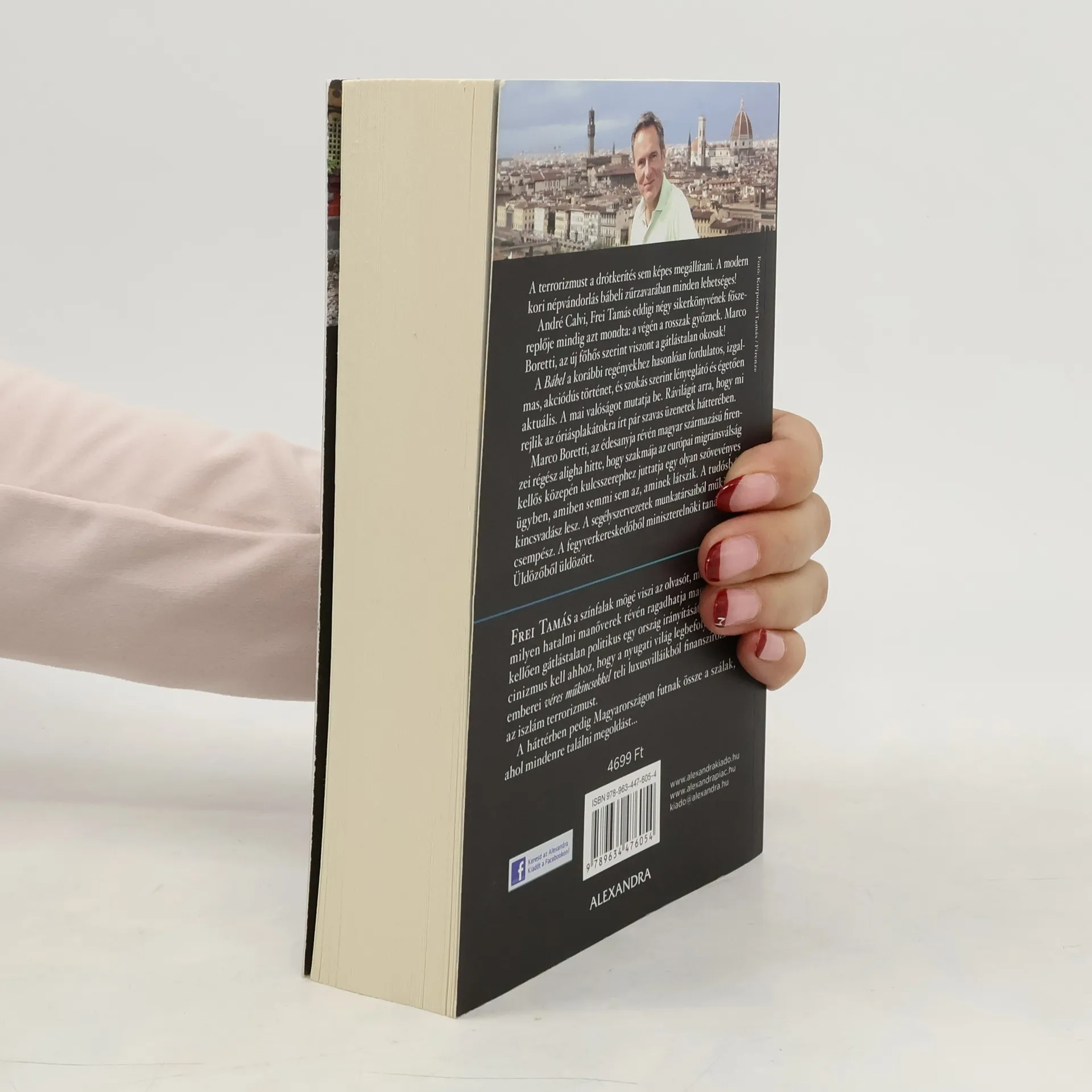 A terrorizmust a drótkerítés sem képes megállítani. A modernkori népvándorlás bábeli zűrzavarában minden lehetséges!André Calvi, Frei Tamás eddigi négy sikerkönyvének a főszereplője mindig azt mondta: a végén a rosszak győznek. Marco Boretti, az új főhős szerint viszont a gátlástalan okosak!A Bábel a korábbi regényekhez hasonlóan fordulatos, izgalmas, akciódús történet, és szokás szerint lényeglátó és égetően aktuális. A mai valóságot mutatja be. Rávilágít arra, hogy mi rejlik az óriásplakátokra írt párszavas üzenetek hátterében.Marco Boretti, az édesanyja révén magyar származású firenzei régész aligha hitte, hogy szakmája az európai migránsválság kellős közepén kulcsszerephez juttatja egy olyan szövevényes ügyben, amiben semmi sem az, aminek látszik. A tudósból kincsvadász lesz. A segélyszervezetek munkatársaiból műkincscsempész. A fegyverkereskedőből miniszterelnöki tanácsadó. Üldözőből üldözött.Frei Tamás a színfalak mögé viszi az olvasót, megmutatja, hogy milyen hatalmi manőverek révén ragadhatja magához egy kellően gátlástalan politikus egy ország irányítását, és miféle cinizmus kell ahhoz, hogy a nyugati világ legbefolyásosabb emberei véres műkincsekkel teli luxusvilláikból finanszírozzák az iszlám terrorizmust.A háttérben pedig Magyarországon futnak össze a szálak, ahol mindenre találni megoldást...