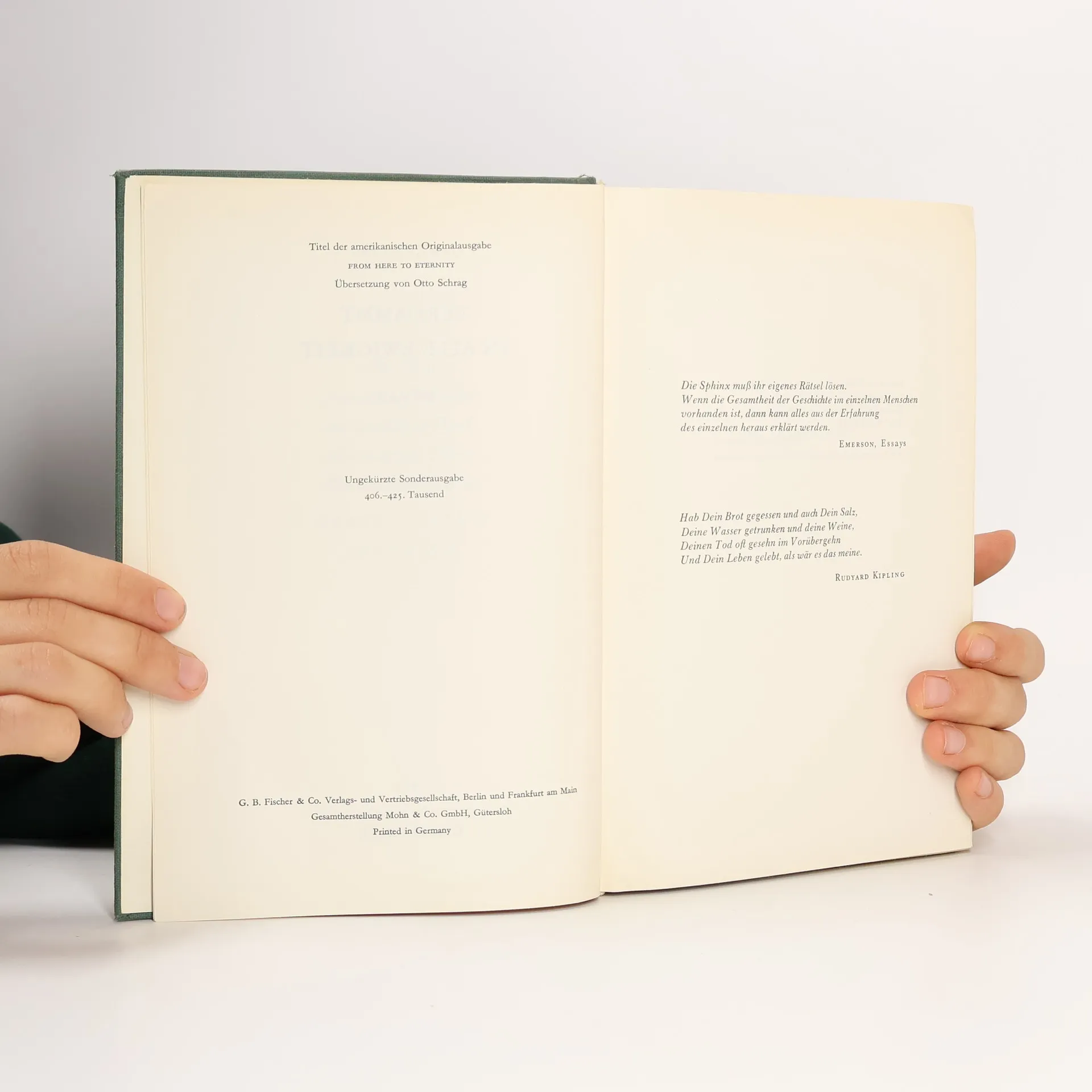 Verdammt in alle Ewigkeit erzählt die Geschichte des Soldaten Prewitt, der kurz vor dem japanischen Angriff auf Pearl Harbour nach Hawaii kommt und brutal geschunden wird, weil er glaubt, auch als Soldat noch gewisse Rechte zu haben, nach einer Messerstecherei verwundet bei einer Freundin untertaucht und schließlich, mehr aus Versehen, erschossen wird. Mit der Veröffentlichung seines Romanerstlings 'From Here to Eternity' entfesselte James Jones 1951 heftige Diskussionen in Amerika. Dort, wie auch in Deutschland, wo der S. Fischer Verlag das Buch noch im selben Jahr herausbrachte, übertraf die schonungslos realistische Schilderung des Soldatenlebens bei weitem das Maß, das der Leser in jenen Jahren vertrug. Aber die erzählerischen Qualitäten von 'Verdammt in alle Ewigkeit' verhalfen dem Buch zu seinem Siegeszug um die Welt, auf dem ihm wenig später der Film folgte. Heute zählt der Roman zu den Klassikern der amerikanischen Nachkriegsliteratur.