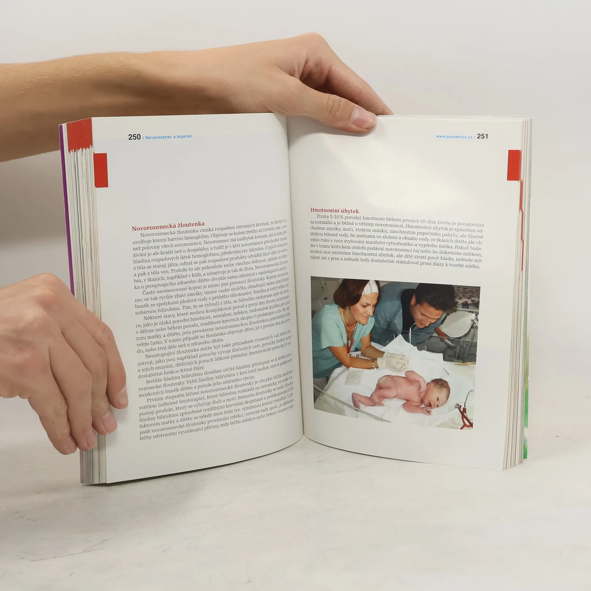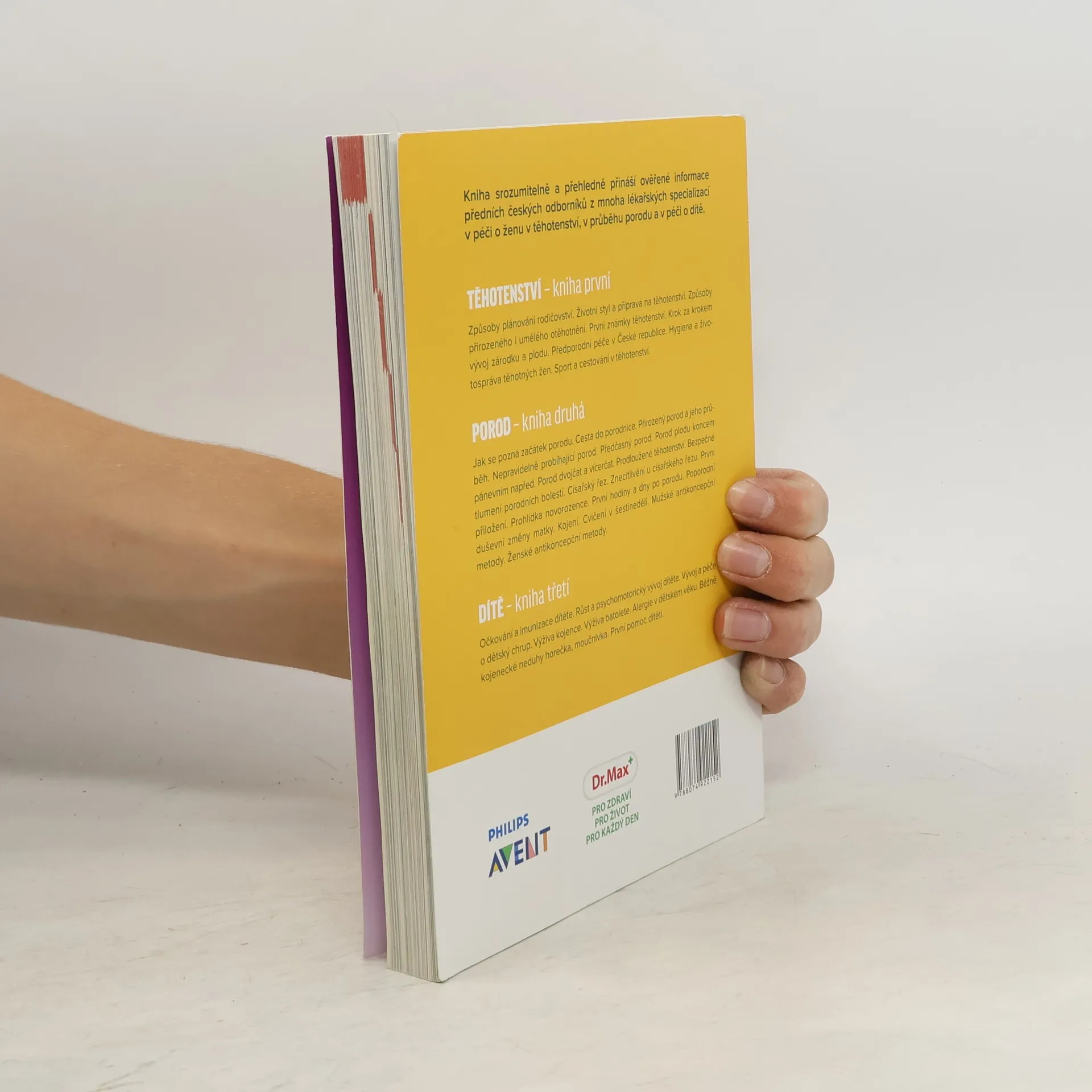 Kniha srozumitelně a přehledně přináší ověřené informace předních českých odborníků z mnoha lékařských oborů o těhotenství, porodu a péči o dítě. Jak se pozná začátek porodu. Cesta do porodnice. Porod přirozený. Průběh porodu. Nepravidelně probíhající porod. Předčasný porod. Porod plodu koncem pánevním napřed. Porod dvojčat a vícerčat. Prodloužené těhotenství. Bezpečné tlumení porodních bolestí. Císařský řez. Znecitlivění u císařského řezu. Prohlídka novorozence. První hodiny a dny po porodu. Poporodní duševní změny matky. Kojení. Cvičení v šestinedělí. Mužské antikoncepční metody. Ženské antikoncepční metody.