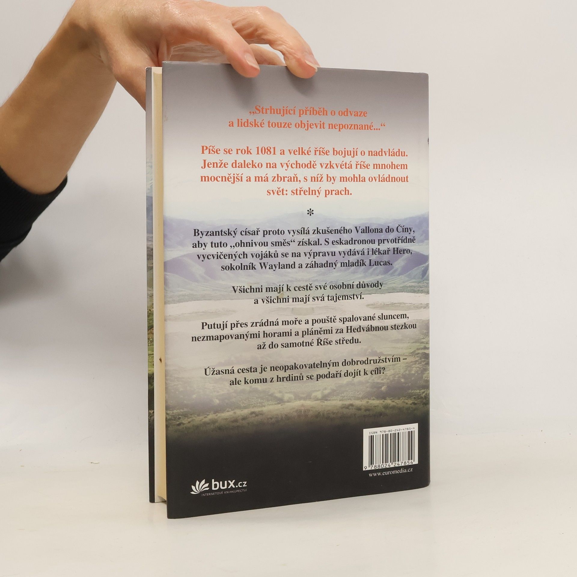 Uplynulo dlouhých devět let a hrdinové knihy Cesta sněžných ptáků se opět setkávají. Píše se rok 1081 a ctižádost byzantského císaře je bezmezná. Hodlá získat „ohnivou směs“ Východu, zázračný vybuchující prášek, který údajně mají na druhém konci světa v Číně. A tak se Vallon s přáteli vydává po Hedvábné stezce... Robert Lyndon dokázal to, co se podaří málokdy: pokračování historické ságy je opět strhující. Hlavní postavy prošly proměnou a přibyly k nim další; především záhadný mladík Lucas, který má své osobní důvody, proč se k Vallonovi připojit. Atmosféra děje vtáhne čtenáře do tehdejšího světa, vylíčeného s úžasnou barvitostí.