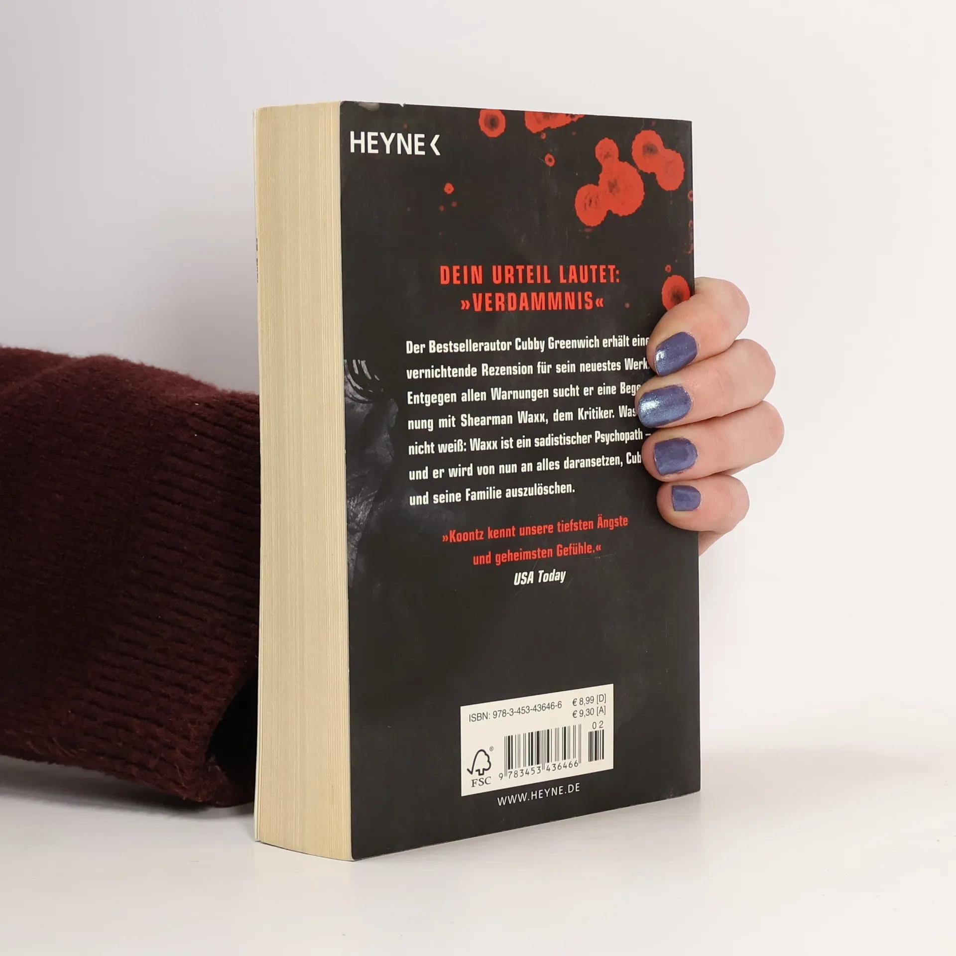 Dein Urteil lautet: Verdammnis Der Bestsellerautor Cubby Greenwich erhält eine vernichtende Rezension für sein neuestes Werk. Entgegen allen Warnungen sucht er eine Begegnung mit Shearman Waxx, dem Kritiker. Was er nicht weiß: Waxx ist ein sadistischer Psychopath – und er wird von nun an alles daransetzen, Cubby und seine Familie auszulöschen.
