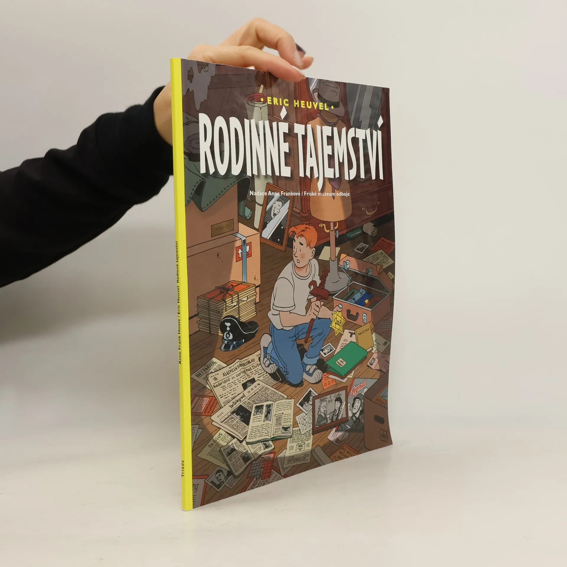 Jeroen hledá u babičky na půdě věci k prodeji na Královský den a narazí na její alba s výstřižky z doby války. Zjistí, že jeho rodina během druhé světové války prožila události, o kterých se vždy mlčelo. Na tradiční tryznu za válečné oběti 4. května objeví něco překvapivého. Komiksový kreslíř Eric Heuvel se v roce 2001 rozhodl studovat učitelství dějepisu, což inspirovalo jeho další kreslířskou práci, i když školu nedokončil. K tomuto komiksu nabízíme českým čtenářům zdarma elektronickou verzi pracovního sešitu pro střední školy. Učitelé zde najdou materiály pro promyšlené diskuze o komiksových příbězích, které studentům pomohou pochopit holocaust v historickém kontextu. Seznámí se s životem civilistů ve válečné situaci a různými postoji lidí: někteří byli oběťmi, jiní pomáhali, někteří se přiklonili k okupantům, zatímco jiní zůstávali pasivními diváky. Pracovní sešity studenty vedou k pochopení motivací těchto postojů a dilemat, kterým čelili. Naučí se o diskriminaci, genocidě a vlivu předsudků na lidské rozhodování. Také si osvojí rozdíl mezi totalitním a demokratickým zřízením, přičemž při převodu sešitů do češtiny byla zohledněna česká historie.
