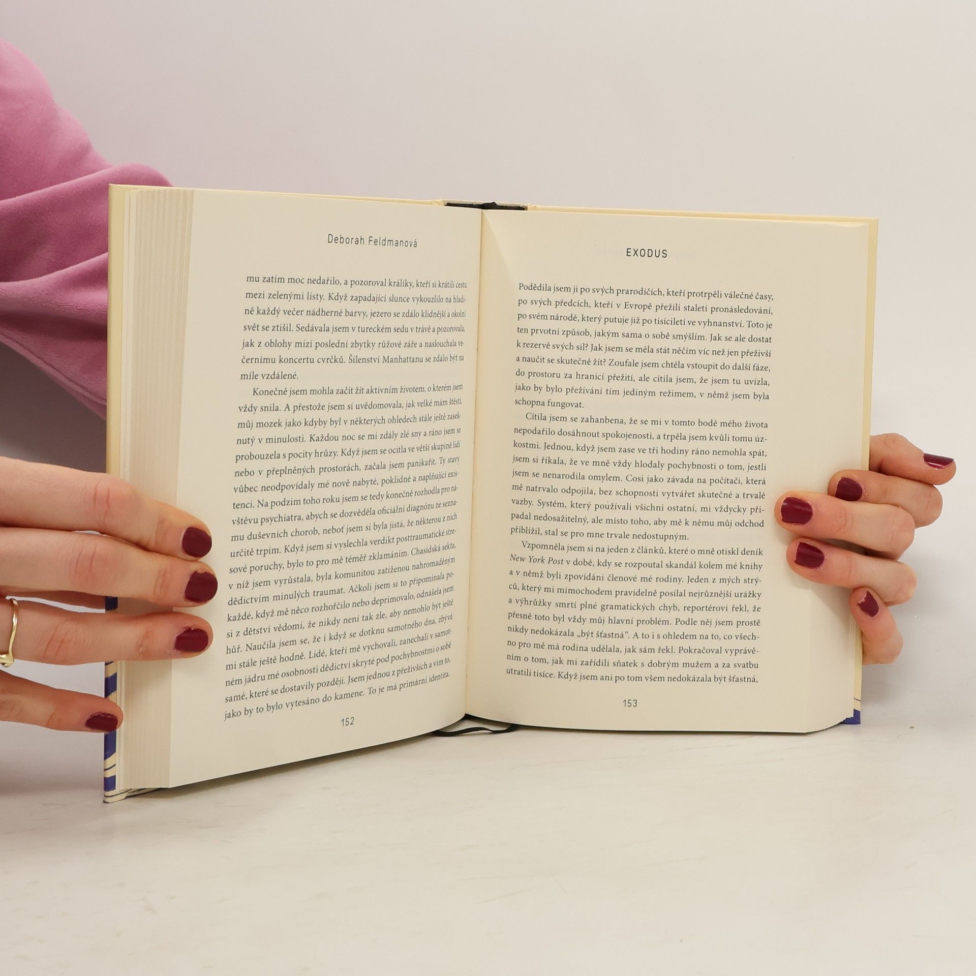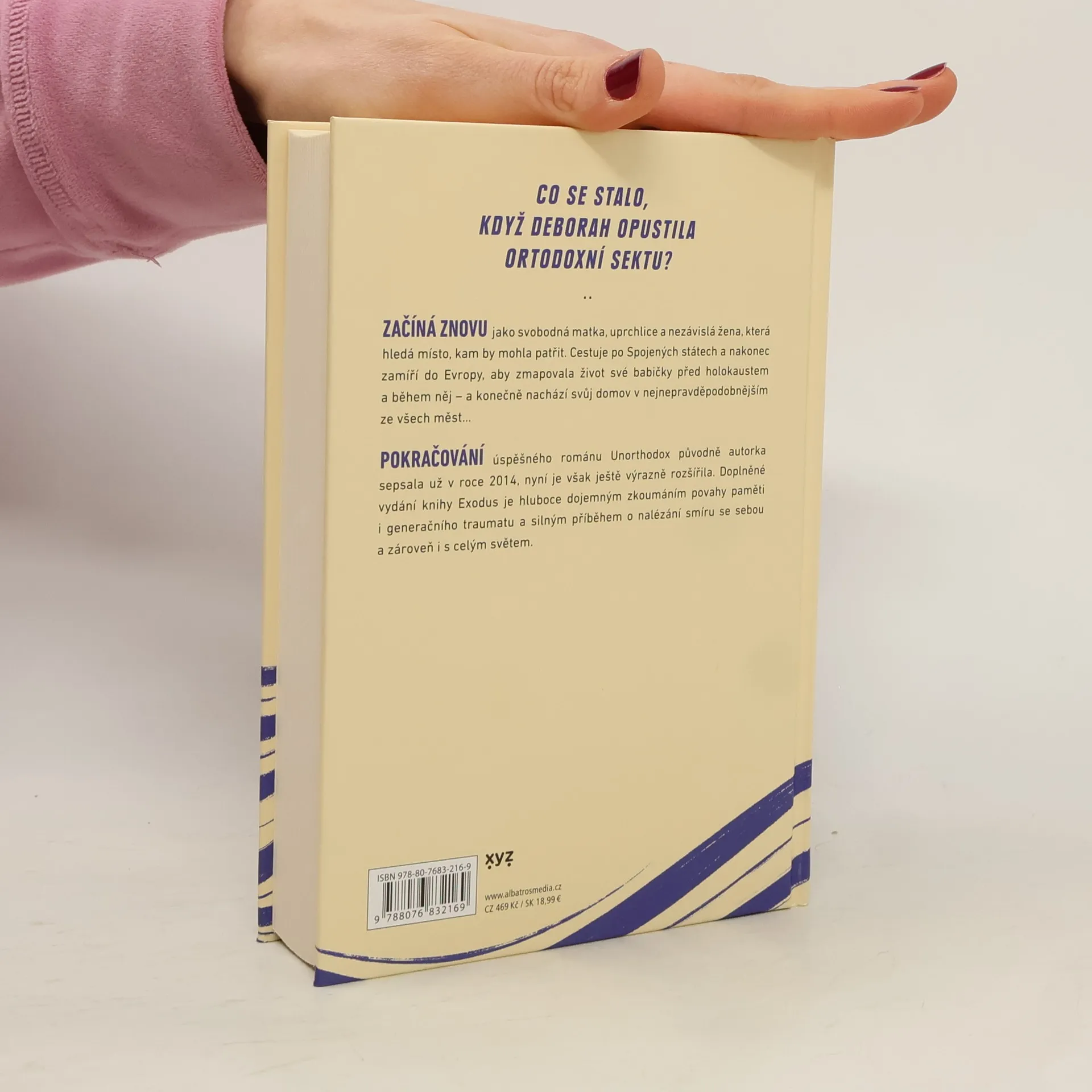 Moje cesta do Berlína Pokračování úspěšného románu Unorthodox autorka původně sepsala už v roce 2014, nyní se však ke svému příběhu vrátila a výrazně jej rozšířila. Co se stalo poté, když v roce 2009 vzala život do svých rukou, odešla spolu se svým malým synem z ortodoxní sekty chasidských Židů a zamířila do světa? Deborah cestovala po Americe i Evropě a nakonec zakotvila v nejnepravděpodobnějším ze všech měst… Doplněné vydání knihy Exodus přináší ucelený vhled do její snahy objevit sebe sama a nalézt svůj skutečný domov.Co se stalo poté, co Deborah Feldmanová opustila náboženskou sektu a vyrazila vstříc svému vlastnímu životu? Ve třiadvaceti letech sbalila svého malého syna, pár věcí a odešla daleko od útlaku a izolace své ortodoxní výchovy v brooklynském Williamsburgu. Začíná znovu jako svobodná matka, uprchlice a nezávislá žena, která hledá komunitu, kam by mohla patřit… Nejprve se vydává do New Yorku, cestuje po Spojených státech, po celé Americe a nakonec zamíří do Evropy, aby zmapovala život své babičky před holocaustem a během něj – a konečně nachází své místo v nejnepravděpodobnějším ze všech měst… Pokračování úspěšného románu Unorthodox autorka původně sepsala už v roce 2014, nyní je však výrazně rozšířila. Doplněné vydání knihy Exodus je tak hluboce dojemným zkoumáním povahy paměti i generačního traumatu a silným příběhem o nalézání smíru se sebou samotným i s celým světem.