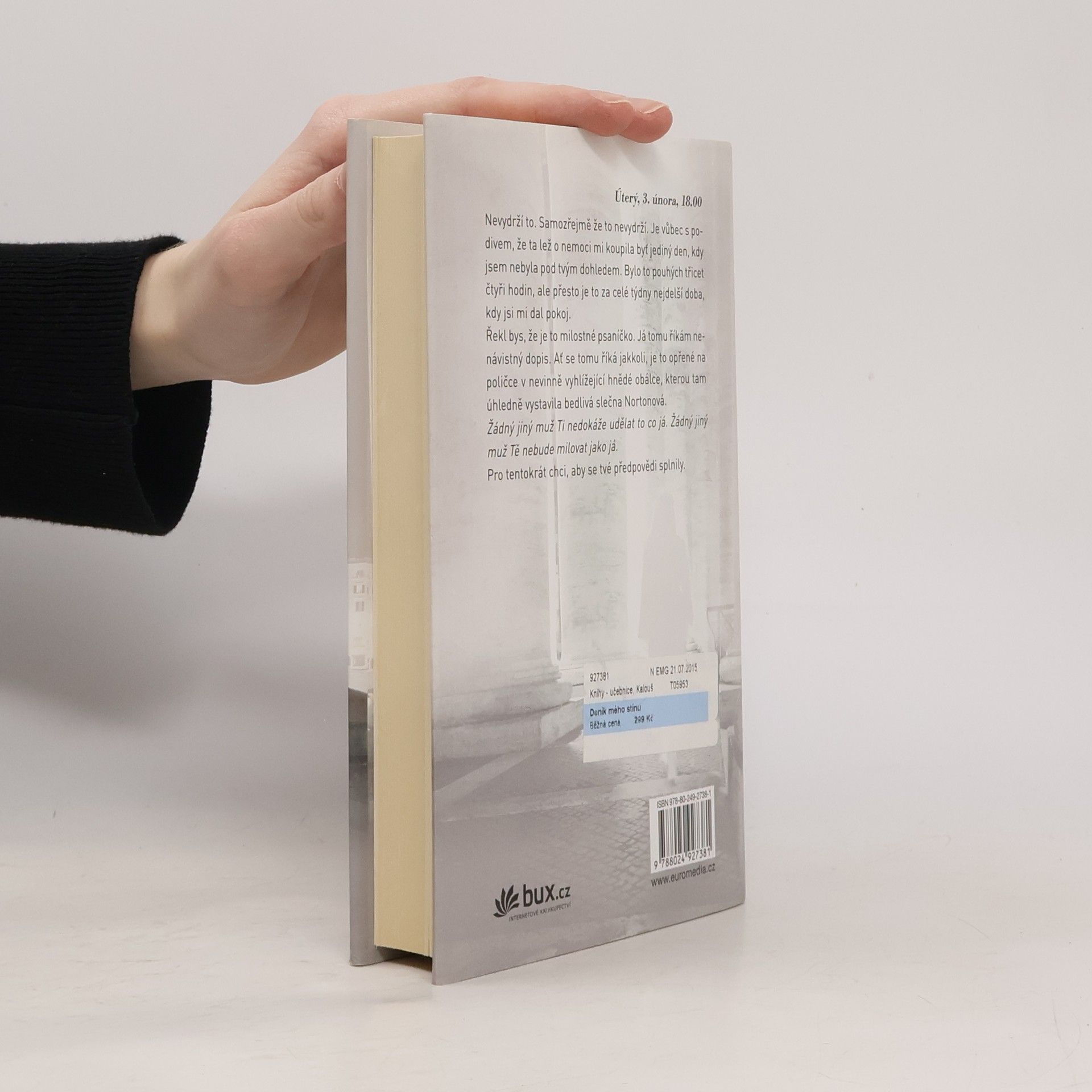 Víte, kde končí láska a začíná nebezpečná posedlost? „Jsi to ty. Samozřejmě že jsi to ty. Někdo mě dohání, a když se otočím, vidím tebe. Věděla jsem, že to budeš ty…“ Ten muž se objeví všude, kam se jen Clarissa pohne. Čeká na ni v parku, na železniční zastávce, před jejím bytem. Bombarduje ji telefonáty a esemeskami. Posílá jí dárky. A zatímco jeho posedlost mladou ženou každým dnem narůstá, Clarissa má čím dál tím větší strach, protože pomoci policie se dovolává marně. Zbývá jí jediné – trpělivě sbírat důkazy a doufat, že se jí podaří muže usvědčit dřív, než se stane něco hrozného… Mrazivý thriller o posedlosti a debut, který vychází ve více než 25 zemích po celém světě.